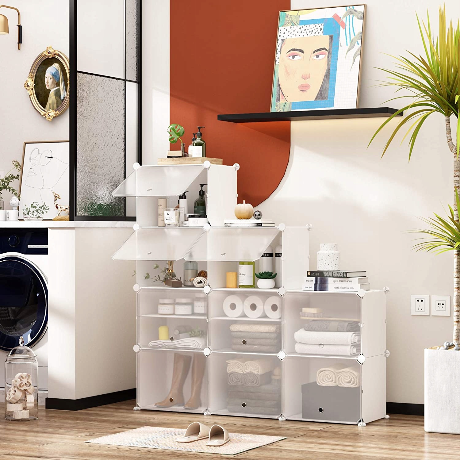 Полиця для взуття, органайзер для дрібниць, шафа для іграшок. Він може виконувати багато функцій. Призначений для організації та впорядкування простору. Його можна вільно поєднувати з іншими модулями для створення великих полиць, які добре підійдуть у будь-якому будинку в багатьох кімнатах. Дуже проста збірка затисканням. При правильній збірці полиця дуже стійка. Має дверцята на замок, які захищають від пилу та візуально організовують простір. Просто протріть вологою тканиною, щоб корпус був чистим.