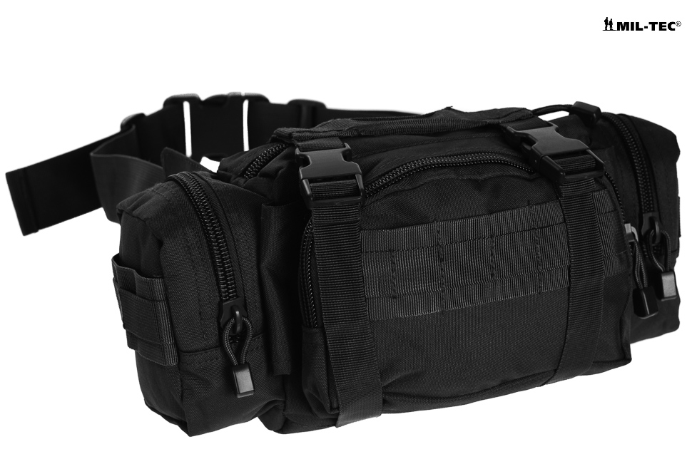 Універсальна набедренна сумка з військовими характеристиками. Продукт німецької компанії Mil-Tec. Рекомендовано любителям трекінгу, бігу та туризму. Це дозволить зручно переносити підручні та цінні речі. Ідеально підходить для камери, телефону, гаманця, пляшки з водою, бутерброда, окулярів або як аптечка. Оснащений 25-мм ременями MOLLE і модульної системи LC2 - це дозволяє прикріпити сумку до рюкзака, тактичного жилета або пояса. Кишенькова система дозволить вам упакувати та впорядкувати своє спорядження. Завдяки численним відділенням будь-яка річ, навіть невелика, знайде своє місце. Виготовлений з прогумованого нейлону 600D - водонепроникного і дуже міцного матеріалу. Закривається на тверді блискавки з металевими блискавками, спеціальна конструкція з використанням ущільнювальних смужок підвищує водонепроникність. Додаткові петлі на блискавках полегшують відкриття кишень. Задня, передня і дві бічні панелі в модульній системі. Монтажні стрічки MOLLE 25 мм і LC2 дозволяють прикріпити додаткові кишені (наприклад, аптечку або додаткову кишеню). Компресійні стрічки запобігають переміщенню вантажу. Зручна ручка для перенесення валізи. Основна вантажна частина з внутрішньою сітчастою кишенею. Дві бічні кишені для дрібниць. Передня кишеня з перегородкою і дві внутрішні кишені. Зручний широкий стегновий ремінь з швидким регулюванням довжини, застібається на ABS пряжку. Прихована кишеня дозволить приховати стегновий пояс. Міцне пошиття, підсилення в критичних місцях і канти гарантують довговічність.