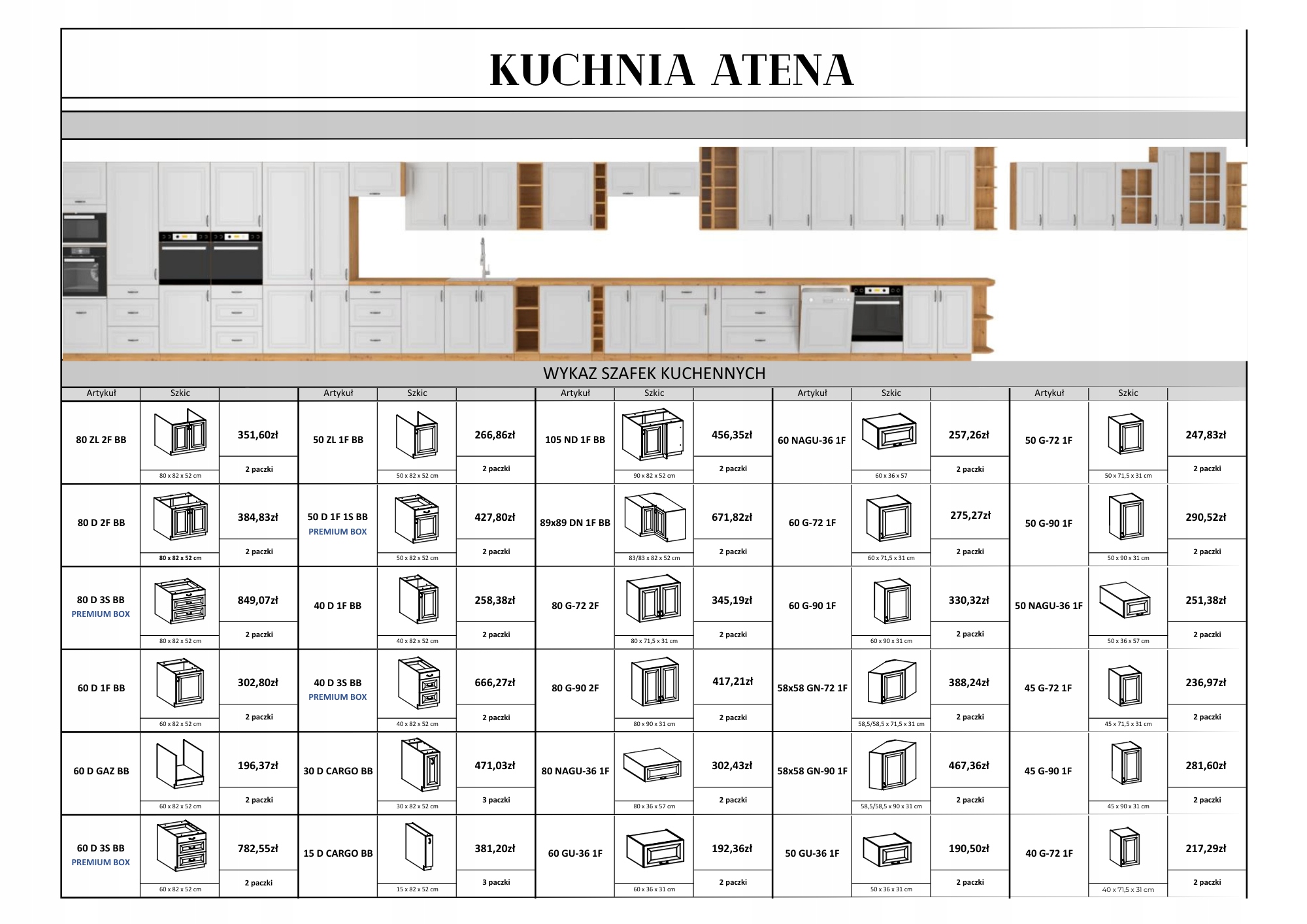 ATENA - ідеальне рішення для людей, які шукають меблі з унікальним виглядом і елегантним характером. Меблі мають характерні прикраси, які додають шарму та роблять кімнату теплою та затишною. Кухня ATENA - це поєднання стилю та практичності, яка вражає своїм зовнішнім виглядом та зручністю використання. Фасади виготовлені з високоякісного МДФ, який забезпечить довговічність протягом багатьох років. Комплект кухонних меблів ATENA пропонує багато практичних рішень, які полегшать організацію та зберігання. Шафи оснащені функціональними системами внутрішньої організації, завдяки яким усі необхідні предмети легко доступні та впорядковані. Крім того, ви можете вибрати відкриті полиці або вітрини, на яких можна виставити гарний посуд, фужери або предмети декору. Це додає інтер’єру характеру та індивідуальності. З кухнею ATENA ви створите простір, який відображає ваш унікальний характер.