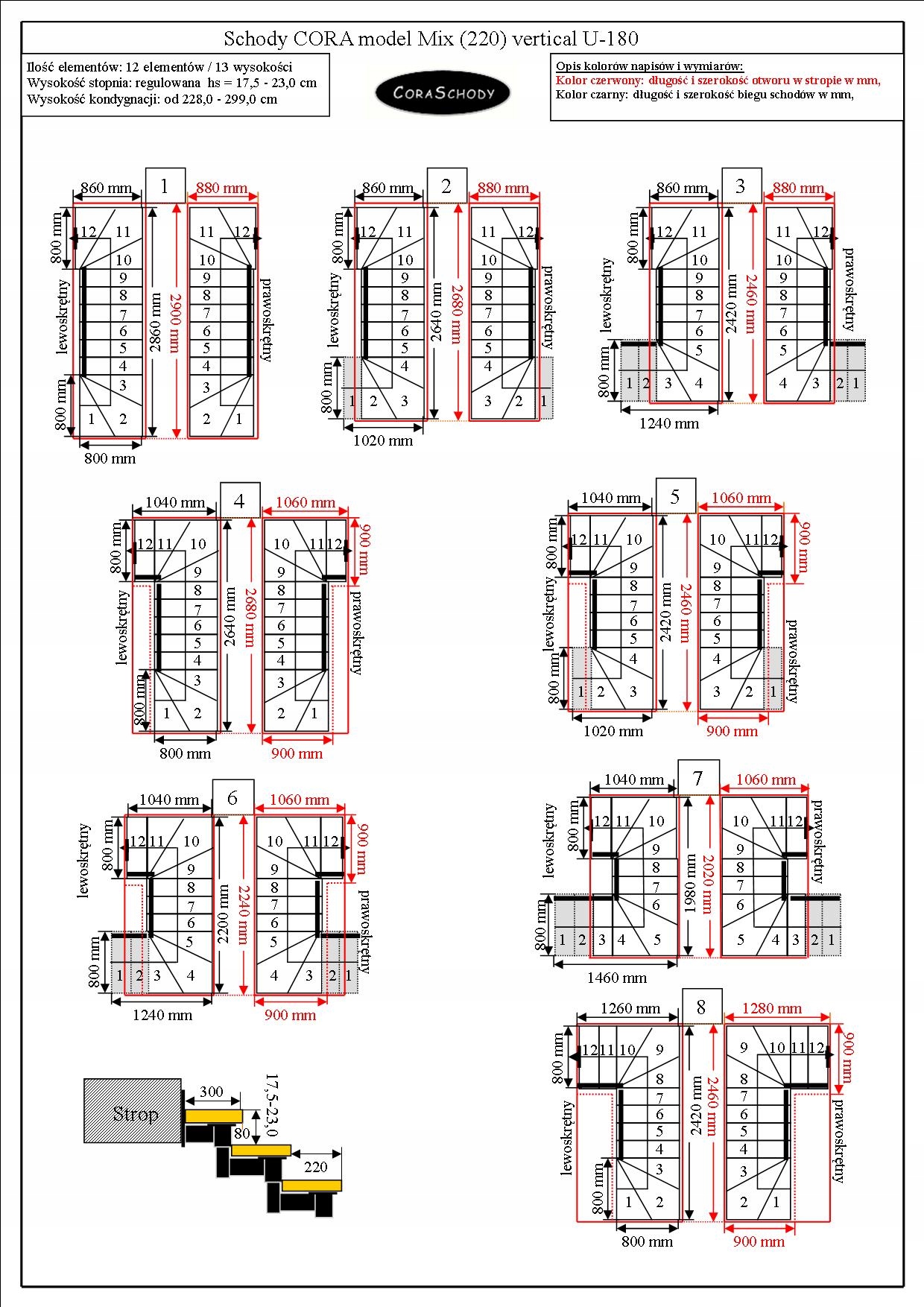 Вертикальні сходи Mix 220 можна встановити в одній з 44 конфігурацій, всі з яких представлені виробником. Дана модель має оригінальну обробку U-180 як праву так і ліву. Замовити просту процедуру можна після додавання анотації до форми замовлення.