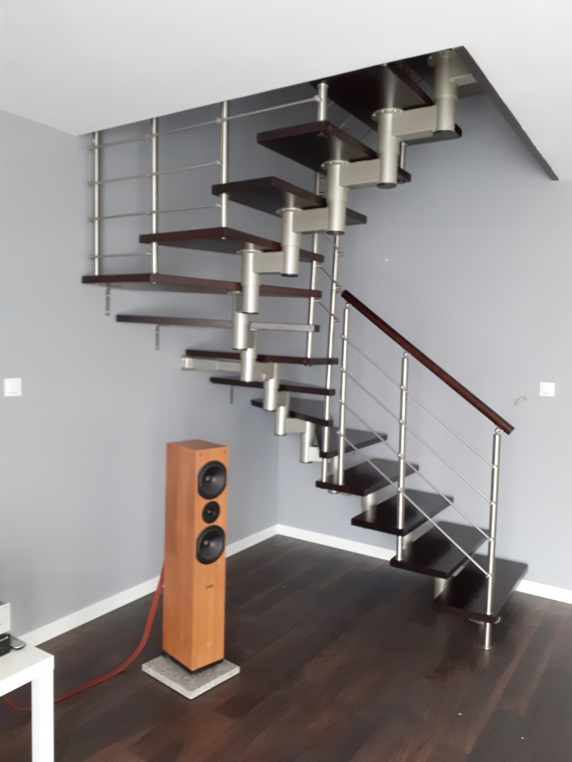 Сходи рекомендується встановлювати біля стіни на відстані до 5 см від неї, що дозволяє встановити анкери . Якщо стіна не витримує анкерування, замість неї слід використовувати опорну колону. Для окремо стоячих сходів передбачається використання опорної колони, а також балюстради з обох боків, додаткові опції за запитом.