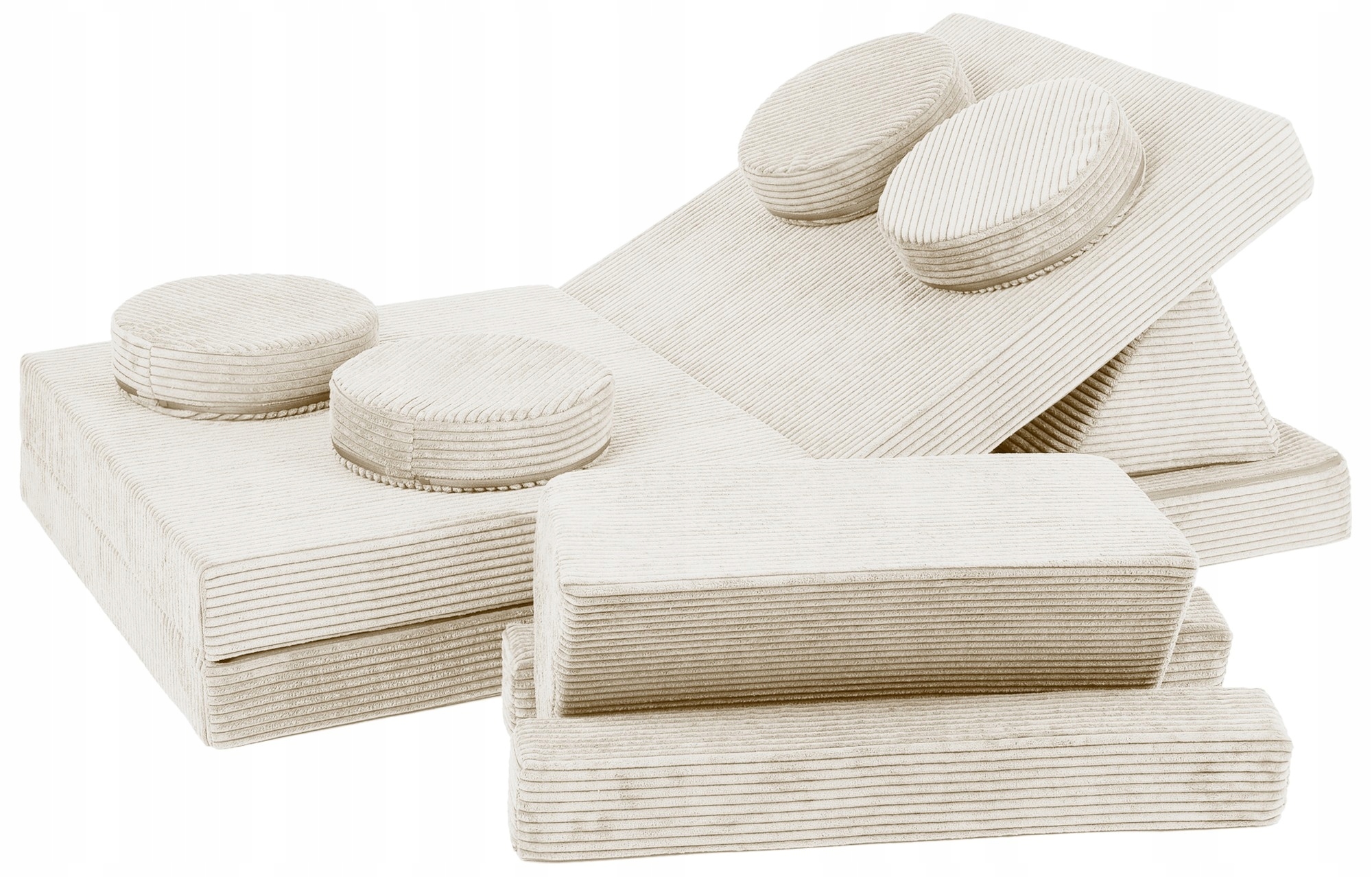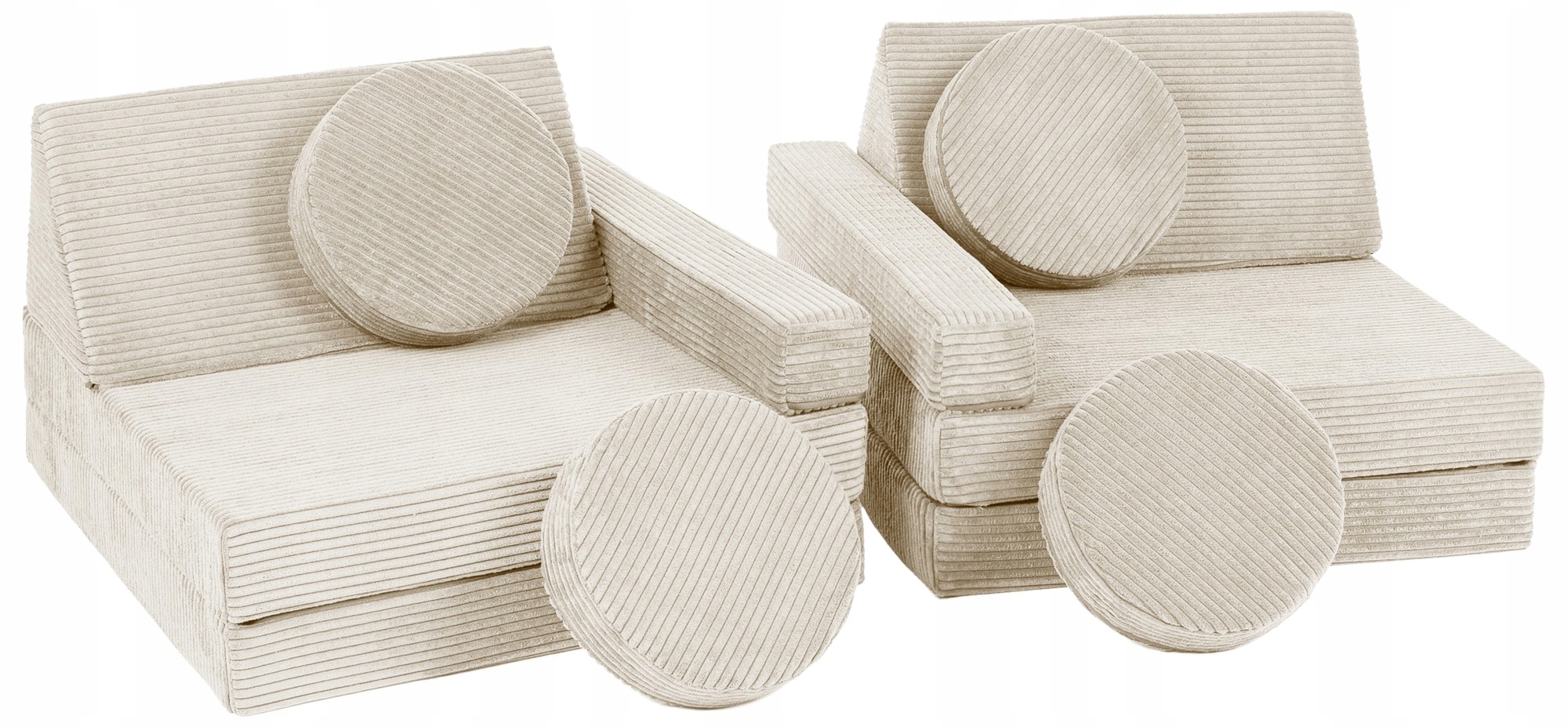 10 модульних елементів - окремі частини дивана можна вільно поєднувати, створюючи різноманітні конструкції: меблі, транспортні засоби або будівлі - лише уява дитини обмежена. 🧩🏗
