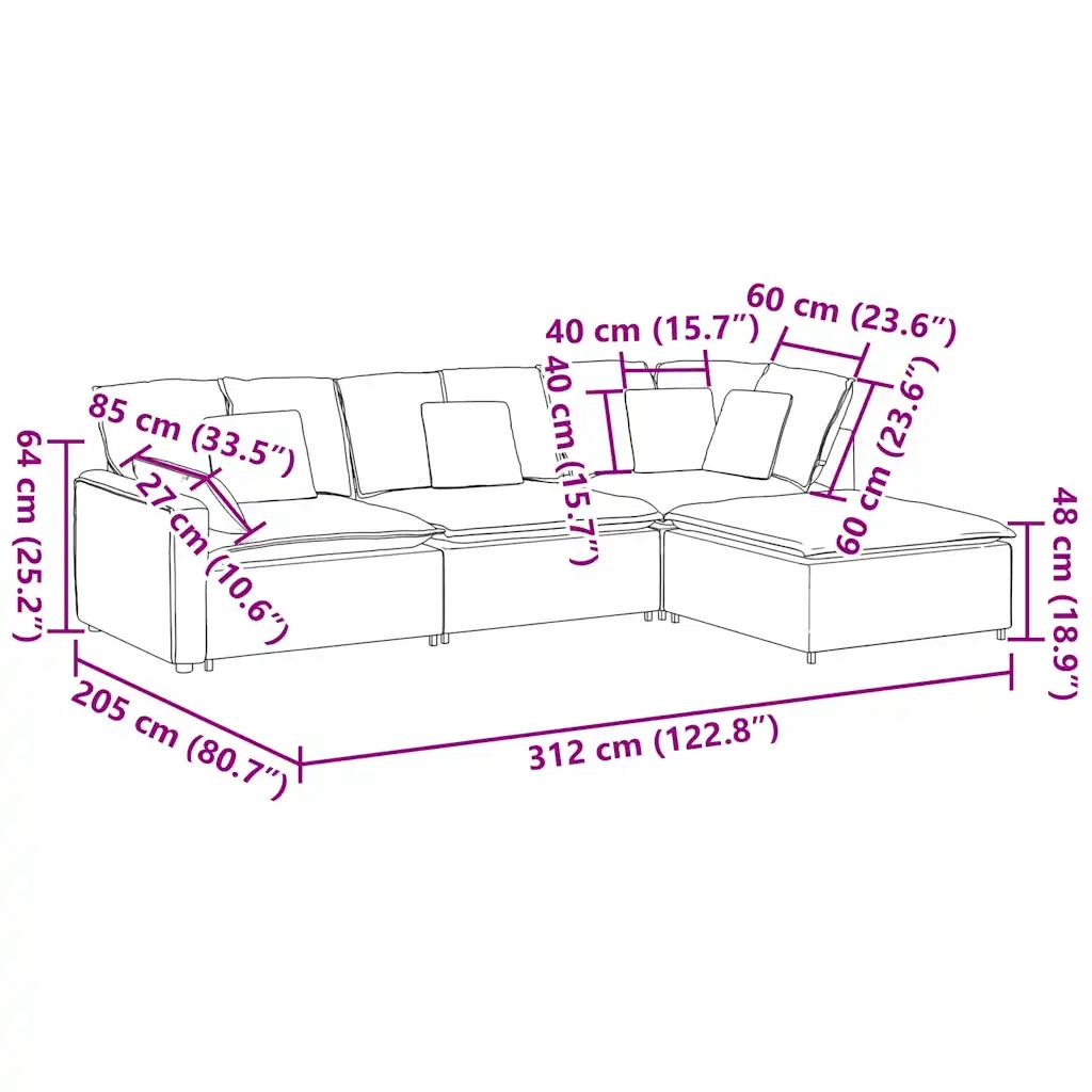 - dimensions Total: 312 x 205 x 64 cm (width x depth x height)