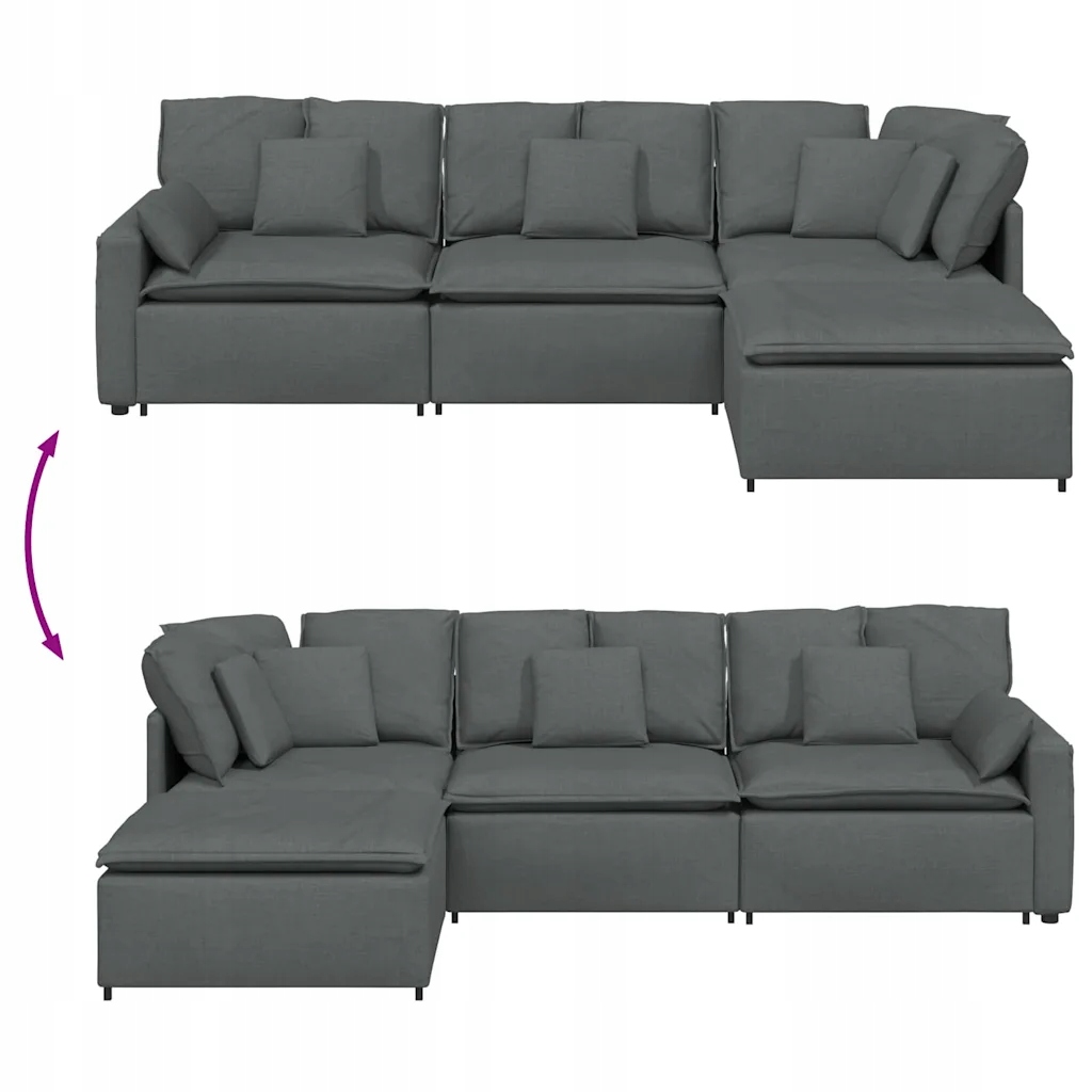 Модульний диван з підставкою для підставки та подушками темно -сіра тканина