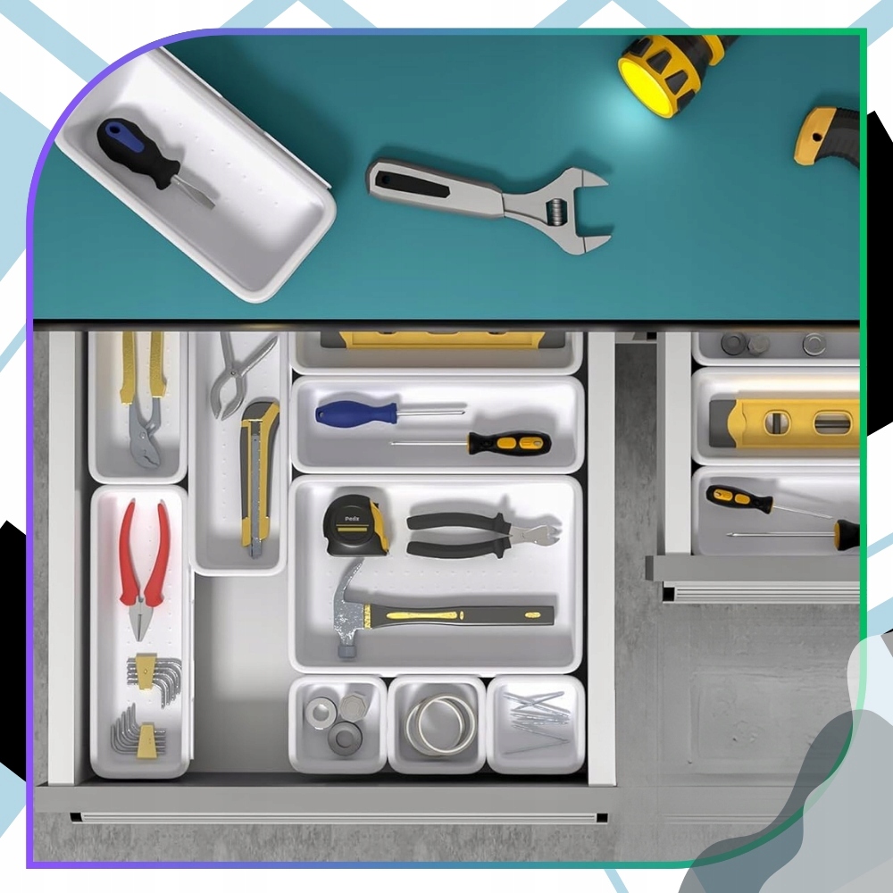 ✅ Модульна конструкція дає повну свободу в облаштуванні внутрішньої частини ящика. Окремі елементи можна вільно комбінувати та налаштовувати відповідно до ваших потреб, що робить цей модульний органайзер для ящиків надзвичайно практичним. Завдяки різним розмірам контейнерів можна зручно зберігати як великі речі, так і дрібні аксесуари, які часто губляться в неприбраному просторі.