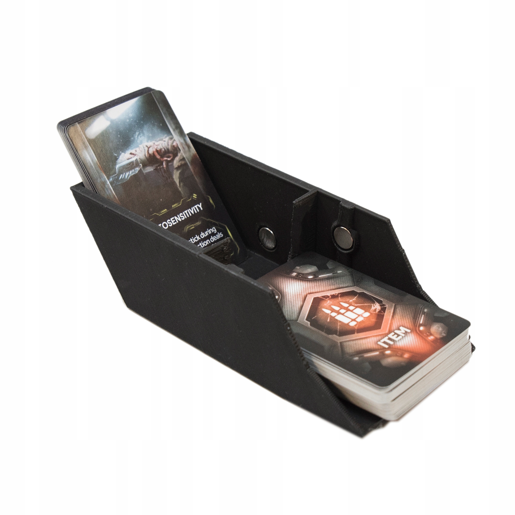 З нашим органайзером, всі картки матимуть своє місце. Заднє вертикальне відділення ідеально підходить для карток, викинутих під час гри. Модульна конструкція ідеальна, коли у нас мало місця на столі та великі органайзери не поміщаються.