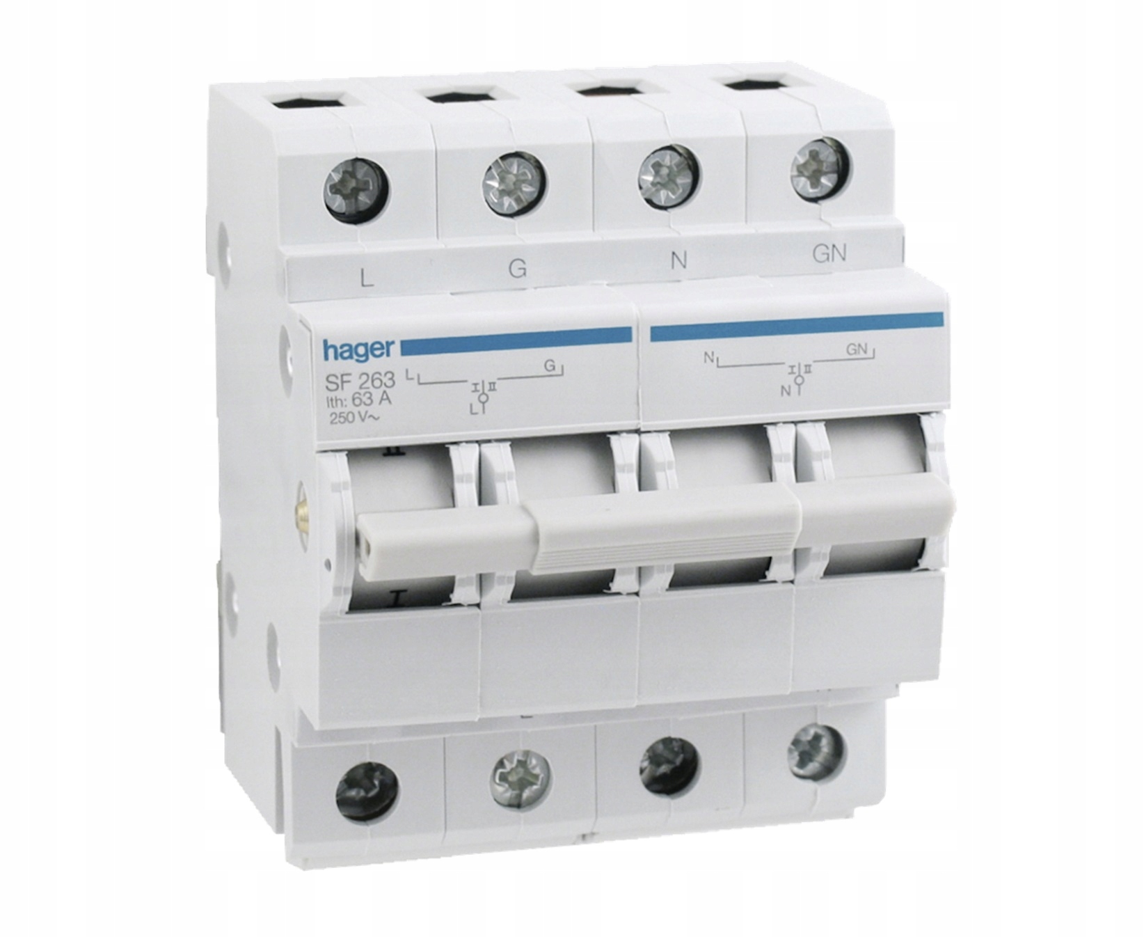 має 2 полюси і призначений для роботи з номінальною напругою 230 В та номінальним струмом при 63 a. відбувається в зміні.