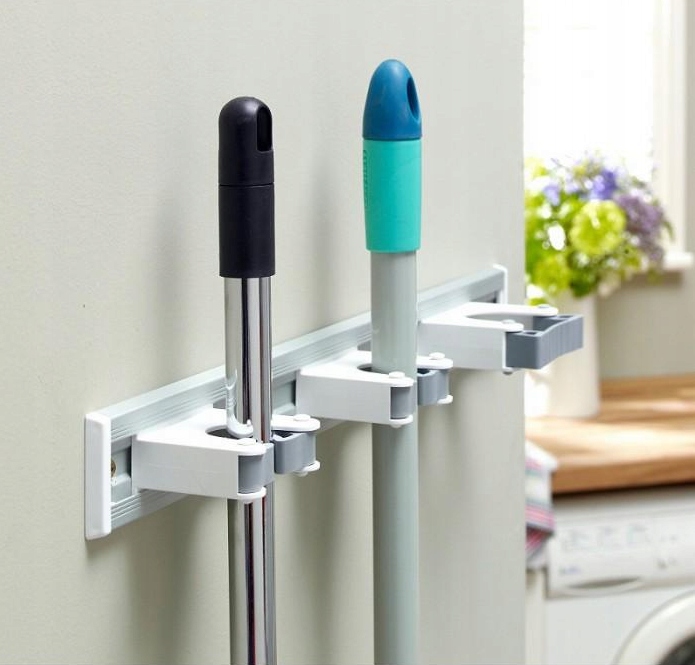 Настінний алюмінієвий тримач довжиною 50 см з трьома нековзкими гачками для палиць та інструментів діаметром до 30 мм.