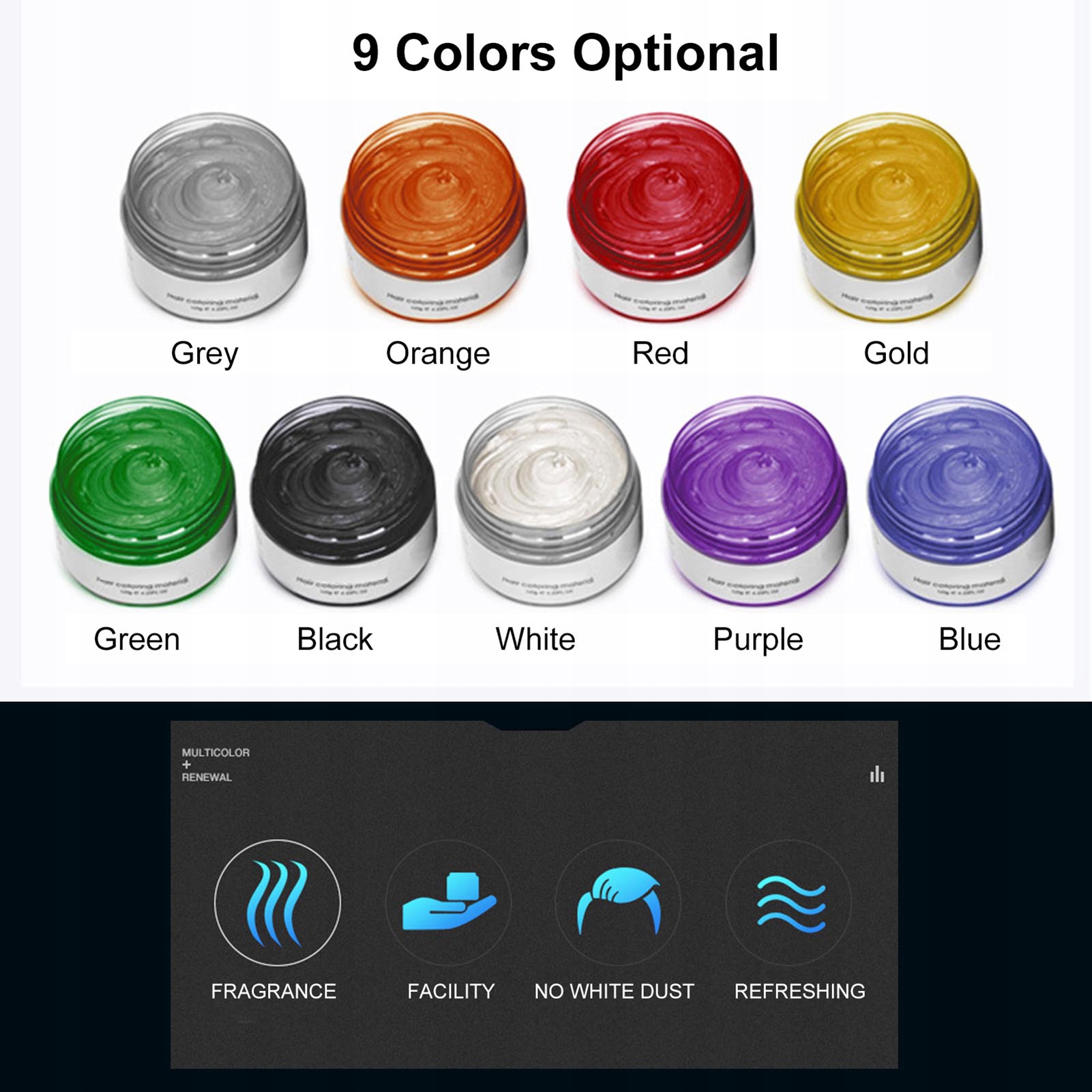 Функція: 1. негайне забарвлення Уельсу, змініть віск на барвисті кілька секунд і легко отримати блискучий колір воску та зачіски.
