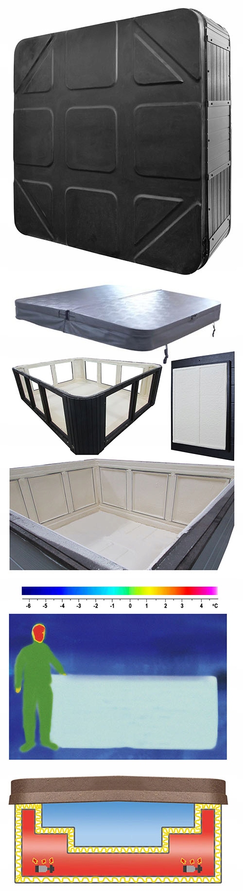 Теплознімок, зроблений взимку при температурі близько -6oC. Ванна наповнена водою, готова до використання, зовнішня температура корпусу та покриття приблизно 0°C. Це свідчить про низькі втрати тепла.