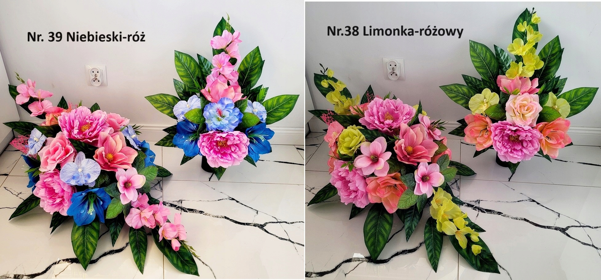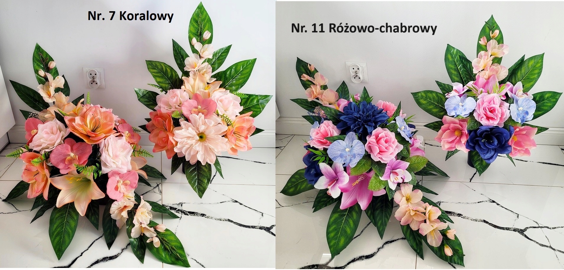 Ціле виготовлено з дуже хорошої якості штучних квітів, листя та аксесуарів, кольорів, як на фотографії. Очерет і букет для могили, завантаженого цементом.