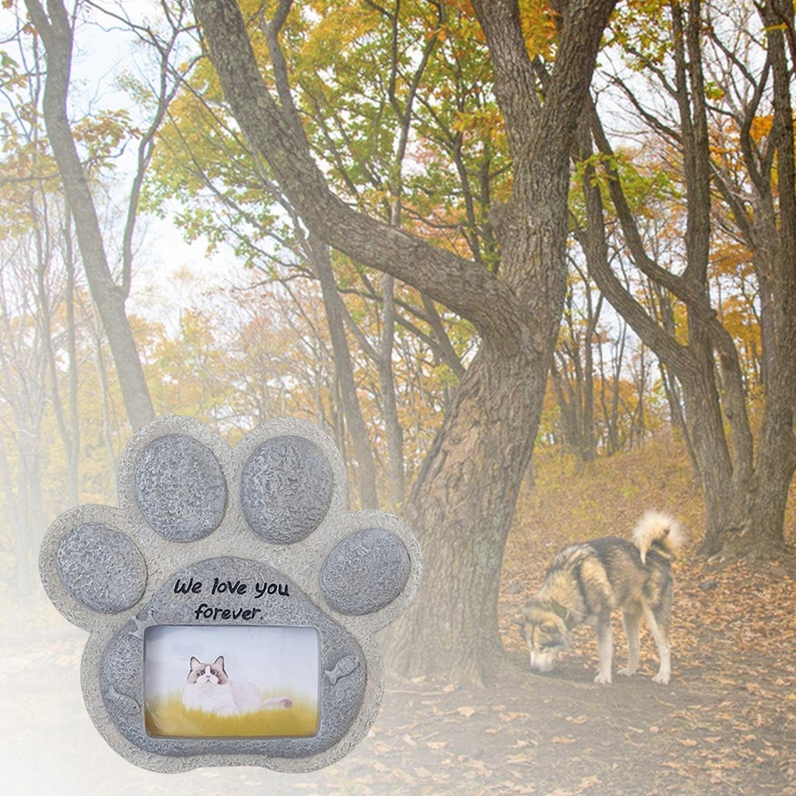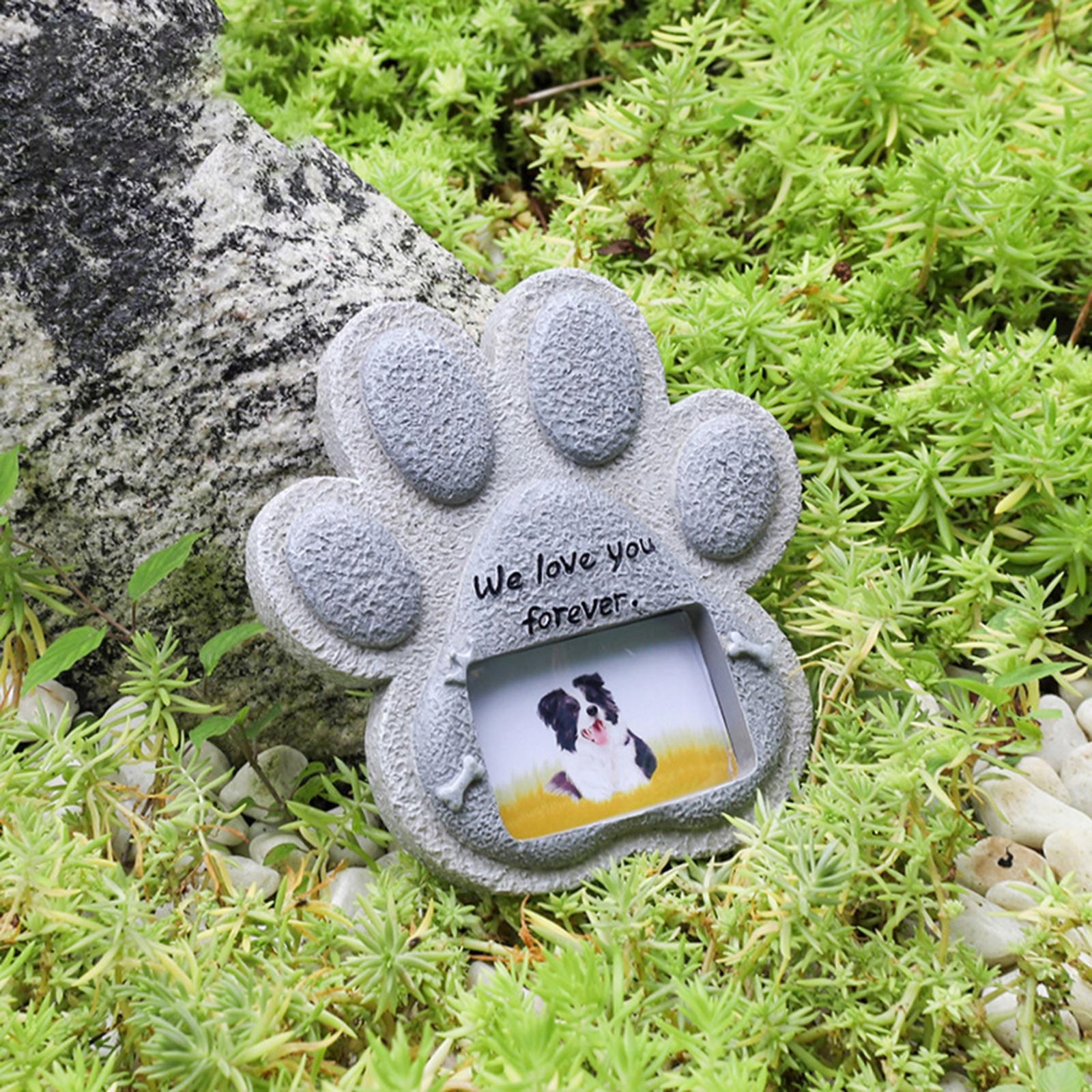 Особливості: кам'яна фоторамка, ви можете помістити фотографії своїх домашніх тварин, собак чи котів у камінь.