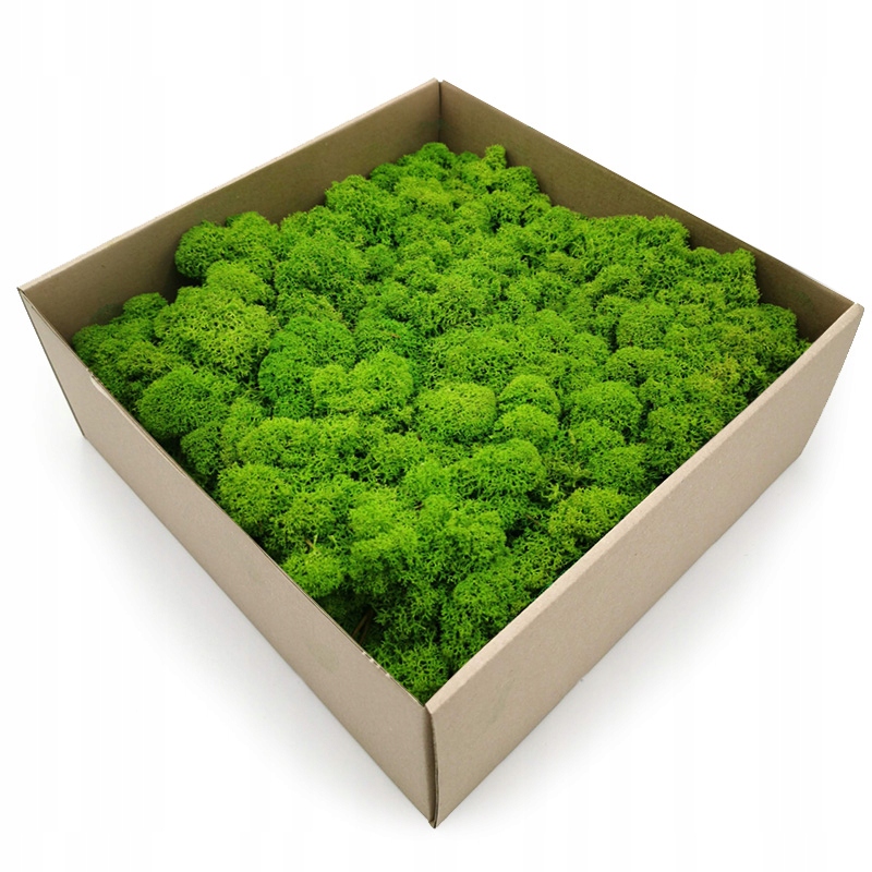 Оленячий мох, стабілізований, підготовлений. Процеси стабілізації та підготовки дозволяють зберегти первинний вигляд і м'якість, а барвники надають світло-зеленого кольору, дуже приємного оку, чудово освітлює приміщення та сучасні «бетонні» інтер'єри, створюючи враження спілкування з природою. Наш стабілізований мох походить із Фінляндії, очищений і містить лише незначну кількість голок та інших природних домішок.