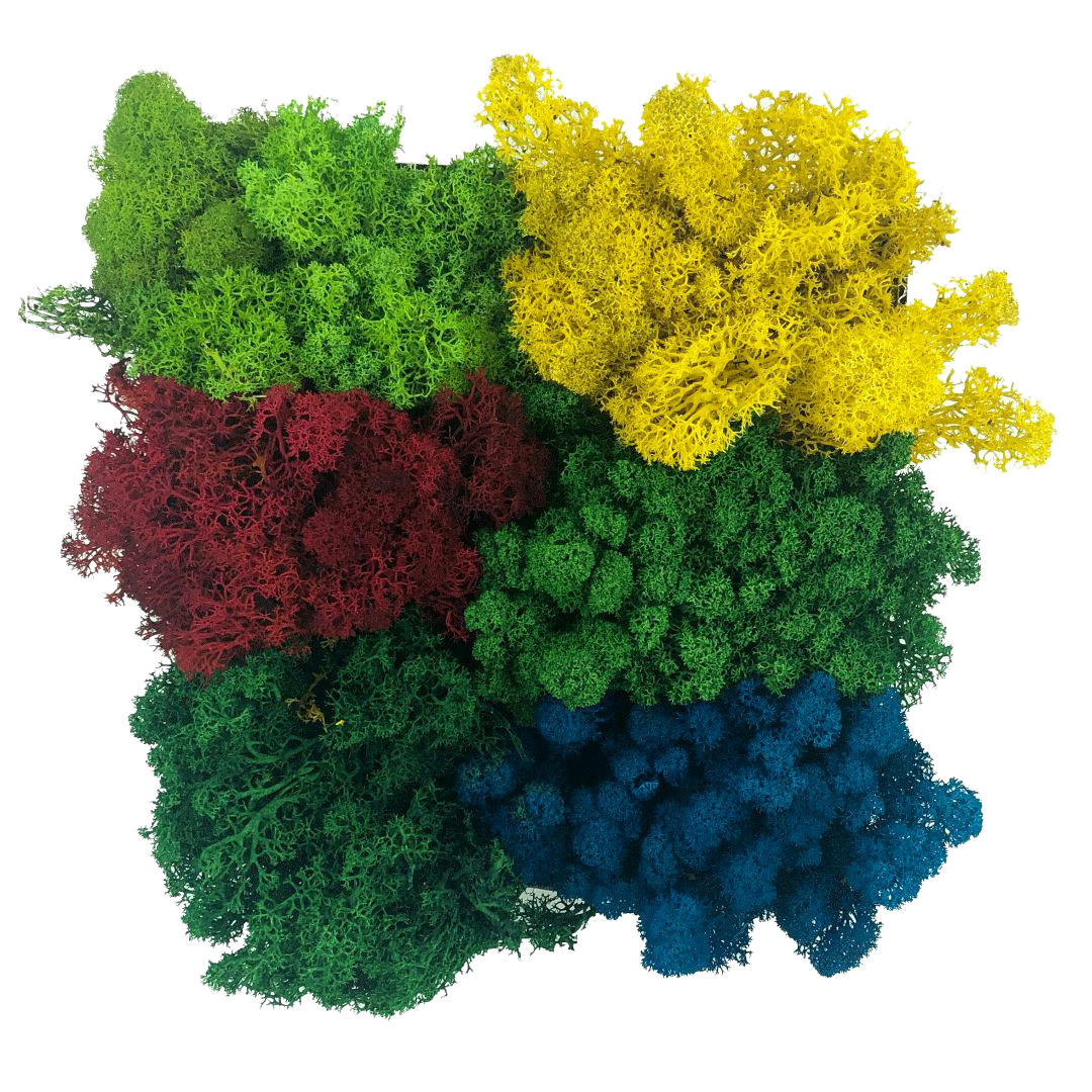 - Для фарбування моху використовуються лише натуральні барвники. Через це мох іноді може мати нерівномірну пігментацію, що робить його природним. Барвники можна переносити на інші поверхні (барвники на водній основі, тобто легко змиваються).