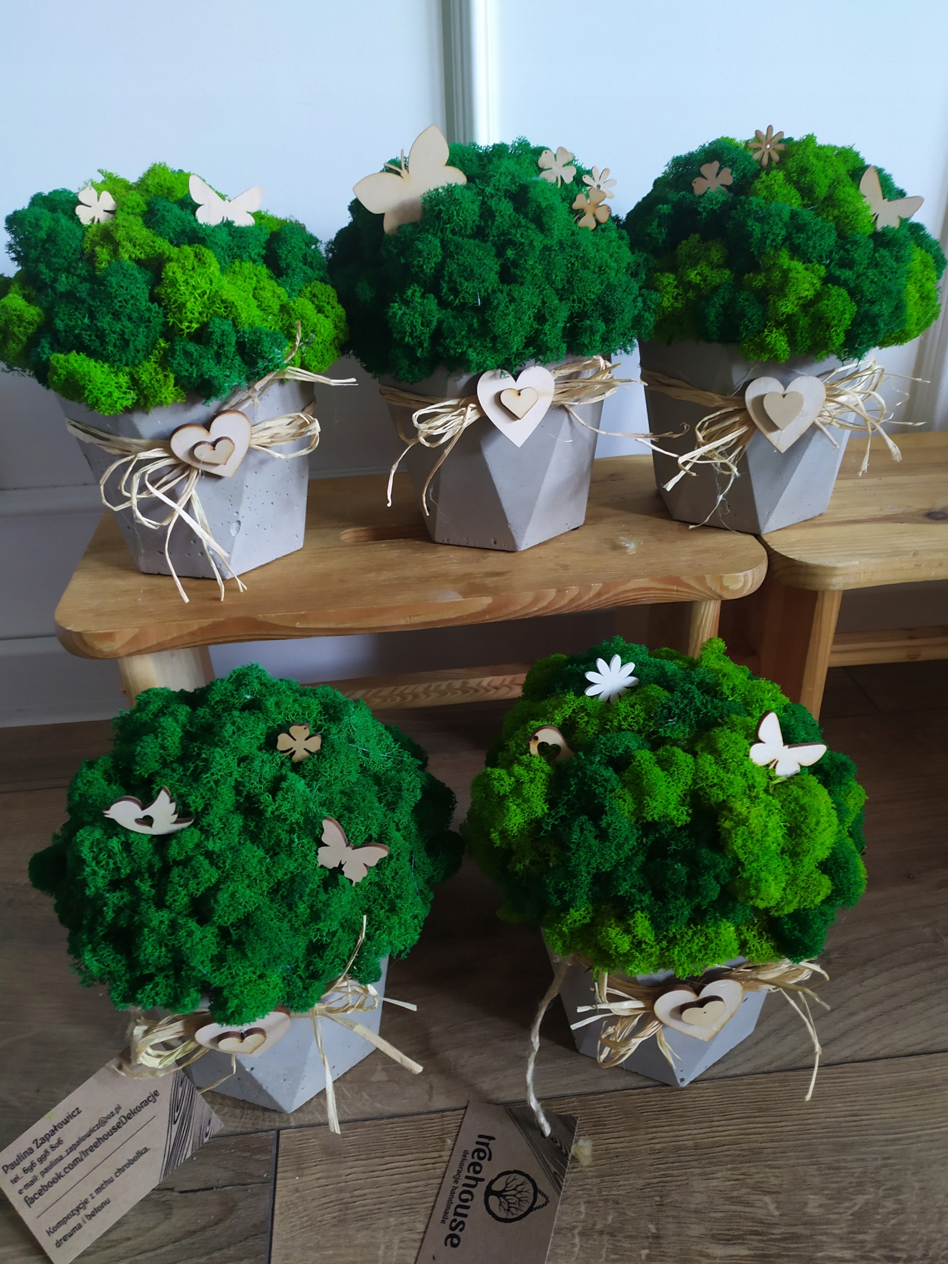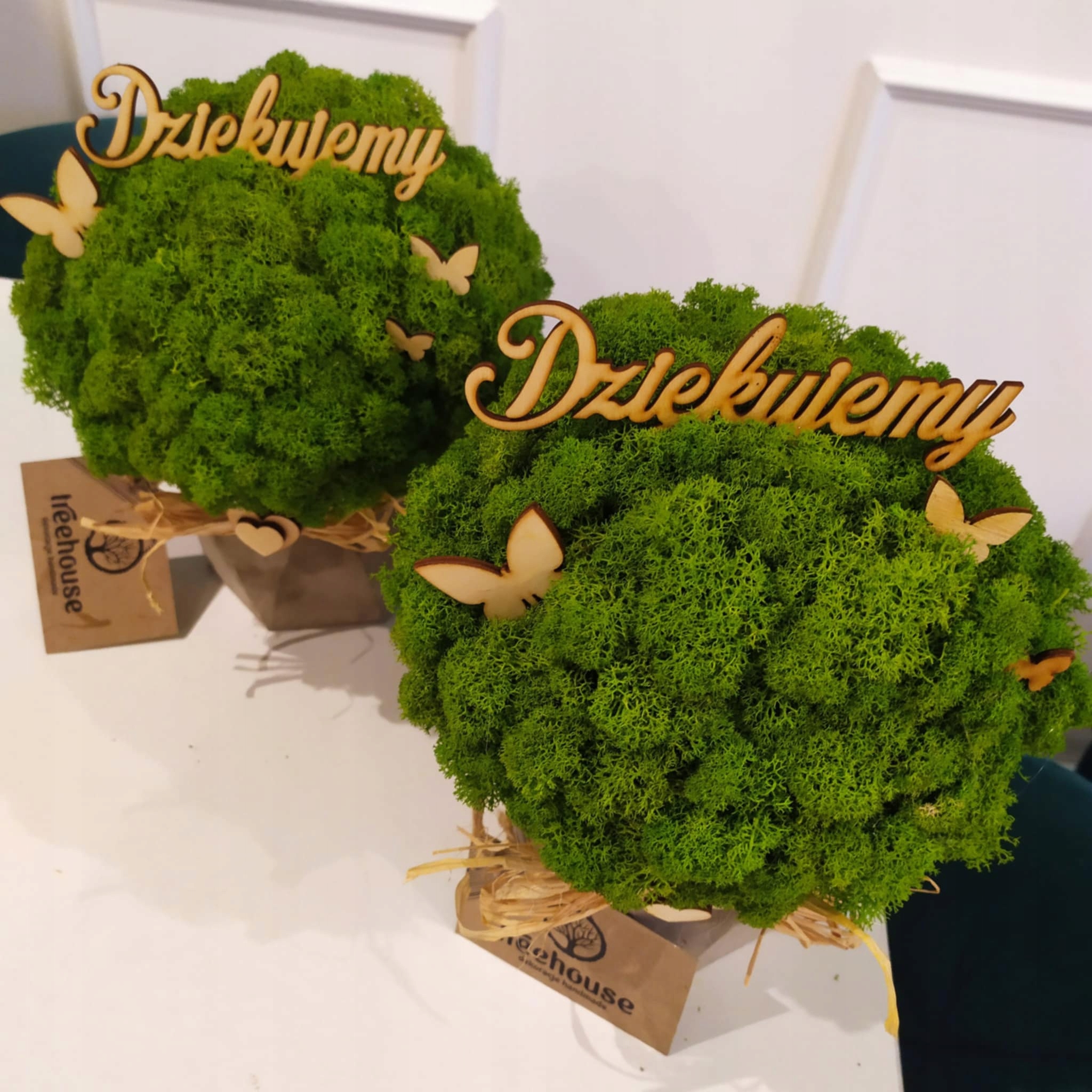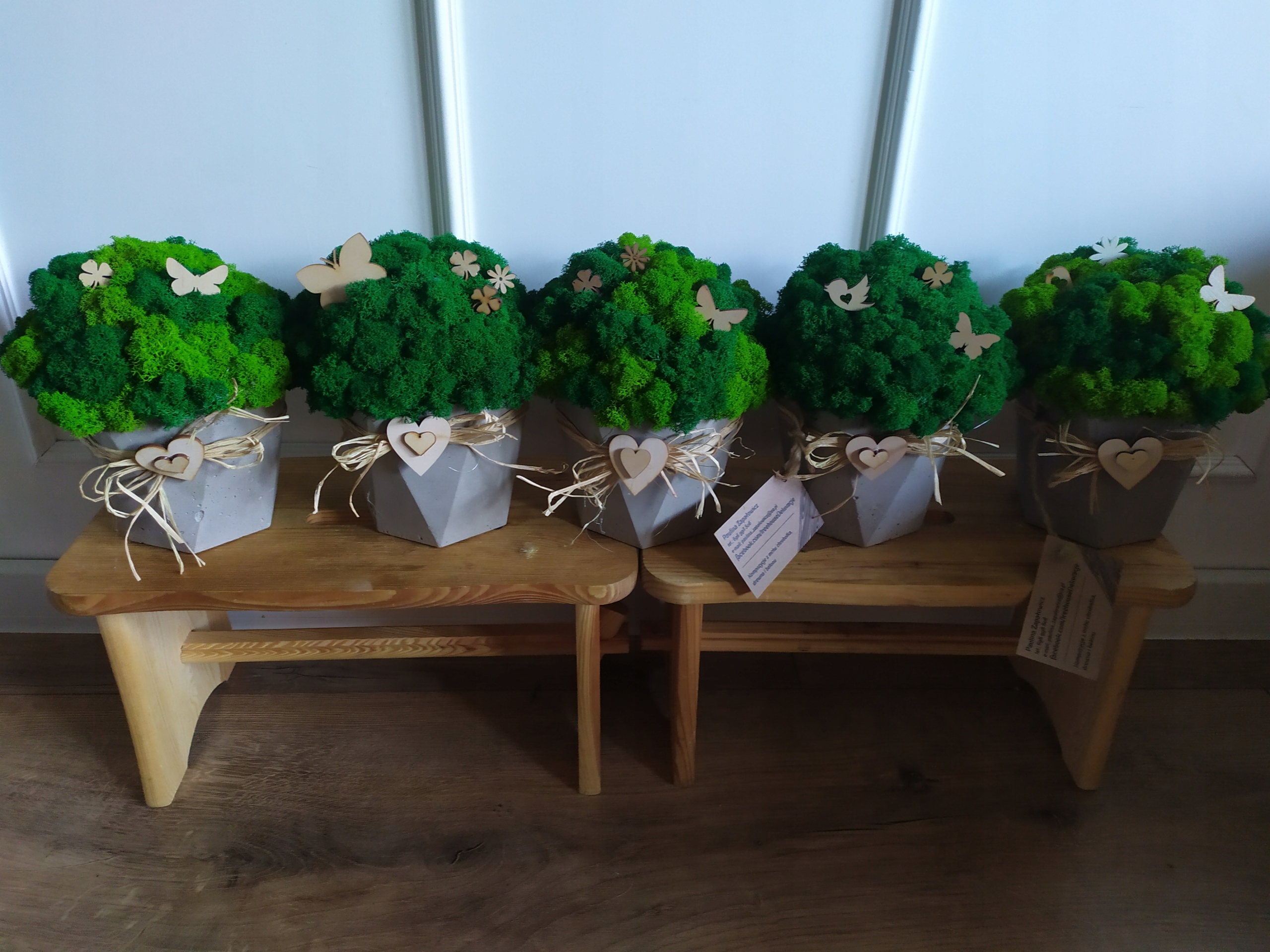 - Як стандарт, ми збагачуємо купол з моху дерев’яними аксесуарами – МЕТЕЛИКАМИ та стрічкою з рафії з серцем