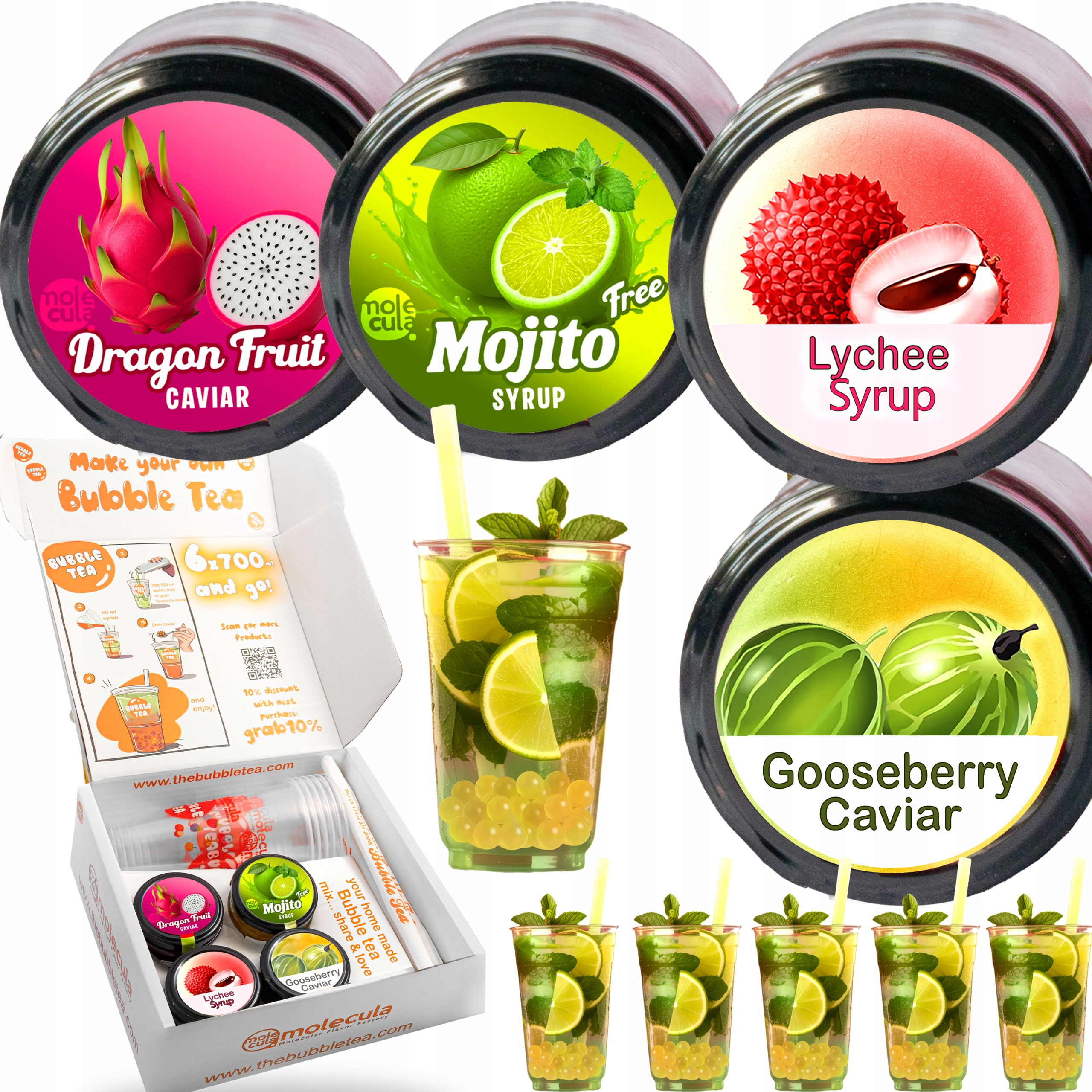 MOJITO FREE LICZI AGREST PITAJA - НАБІР ДЛЯ НАПОЇВ BUBBLE TEA ЧАШКИ СОЛОМИНКИ