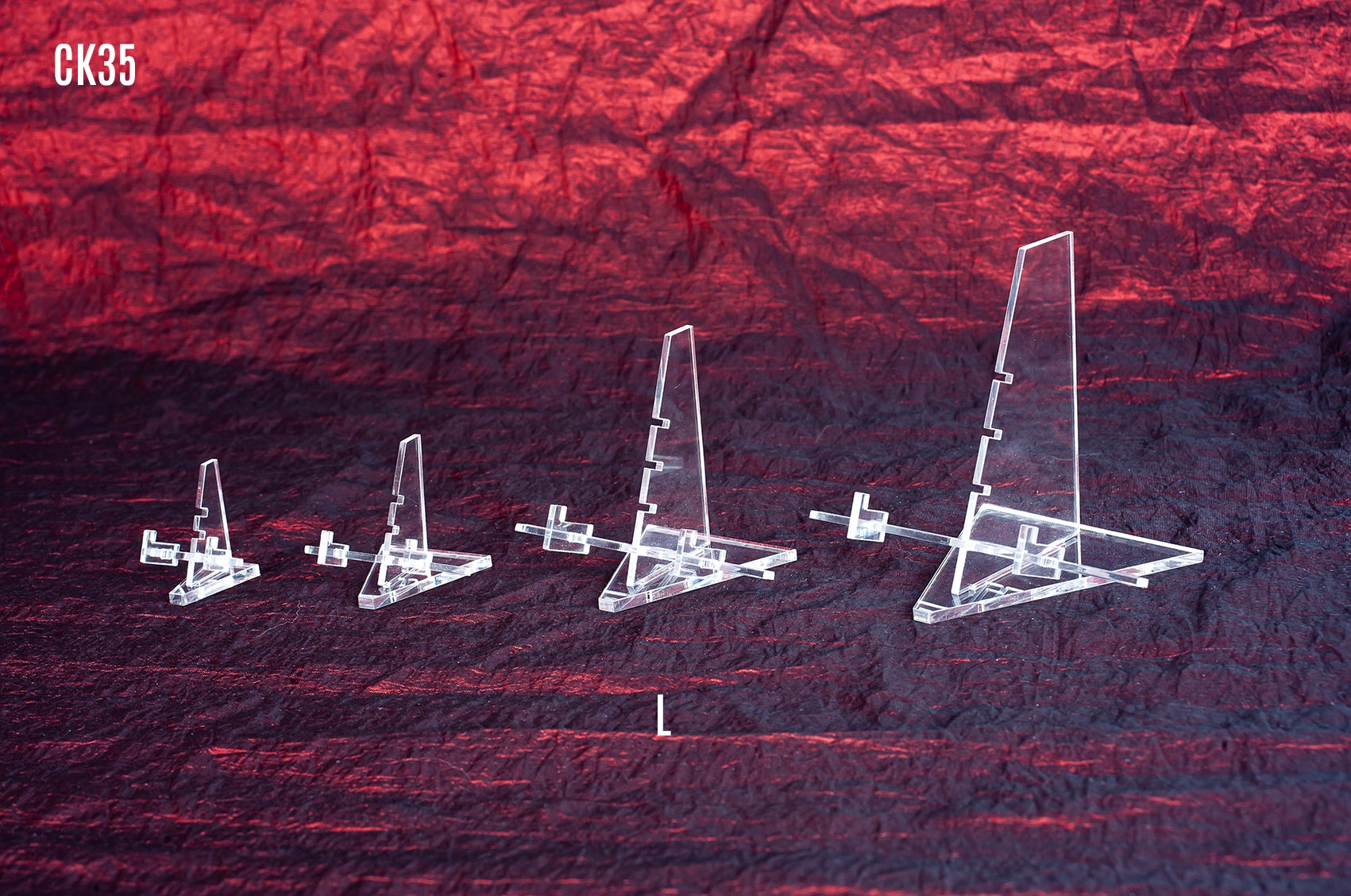 підставка CK35L дозволяє ефективно та зручно опромінювати різні розміри - монети, медалі, прикраси, орли та сувеніри інших колекторів. Підставка складається з декількох елементів, які ми легко складаємо і розповсюджуємо, всі елементи виготовлені з прозорого оргскла. Підставка має коригування висоти та підтримки оголеного елемента.