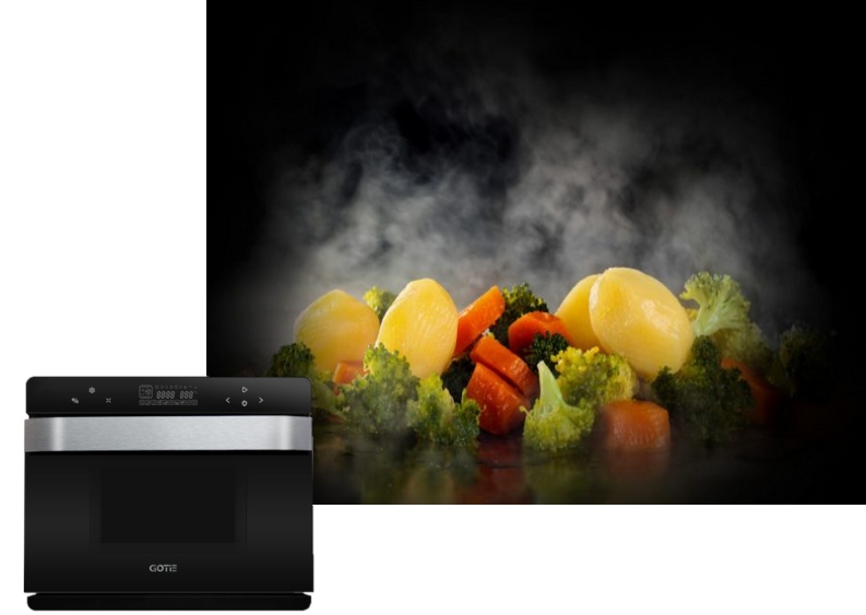 Унікальною особливістю духової шафи GPP-400 BAKEandSTEAM є функція приготування та випікання на парі. Спеціальний резервуар для води, розміщений в апараті, під час роботи виділяє необхідну кількість пари для різних видів продуктів і страв. Завдяки йому ви можете приготувати не тільки соковите печеня на вечерю або смачний пиріг на десерт, але й багато страв, які завдяки парі набудуть нового виміру смаку. Насолоджуйтеся ідеально піднятим хлібом з хрусткою скоринкою, картоплею фрі без шкідливої олії та овочами, які не втрачають своєї поживної цінності. Використовуючи пароварку GOTIE, ви також можете розігріти будь-яку страву, яка завдяки парі не пересохне, як це відбувається в традиційних мікрохвильових печах.