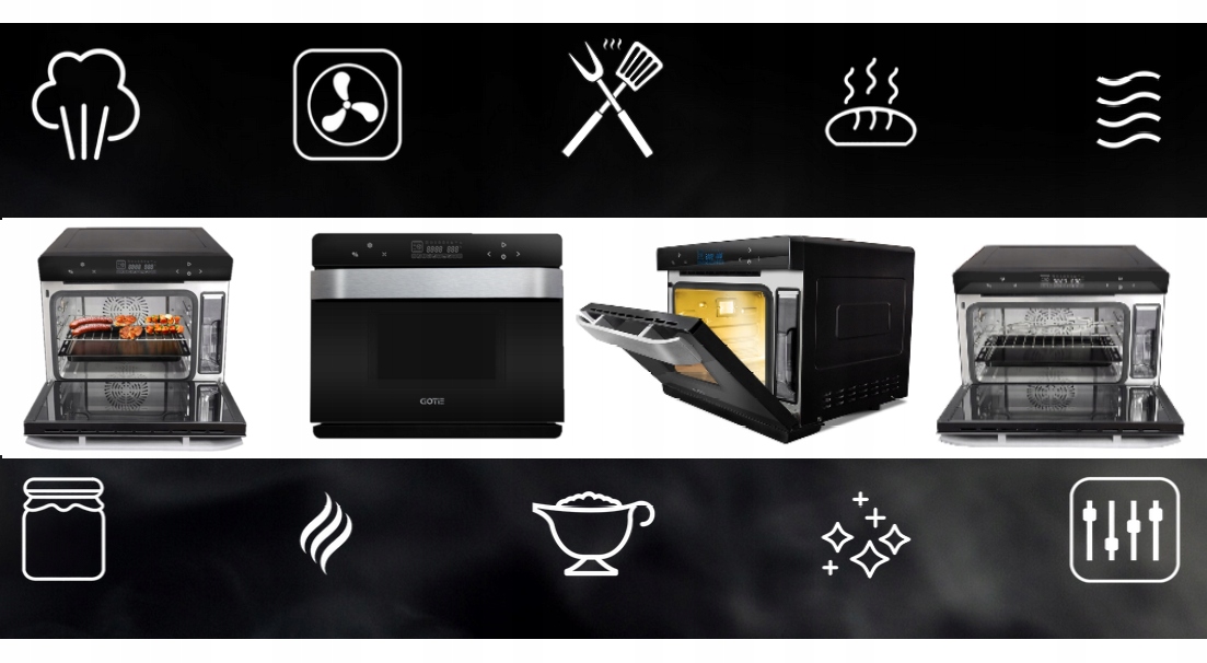 GOTIE BAKEandSTEAM успішно замінить вашу стару газову духовку та працюватиме як новий багатофункціональний пристрій на вашій кухні. Він має два незалежних нагрівача - на верхній і нижній панелі - і вентилятор з функцією конвекції, тому він може працювати як класична духовка.