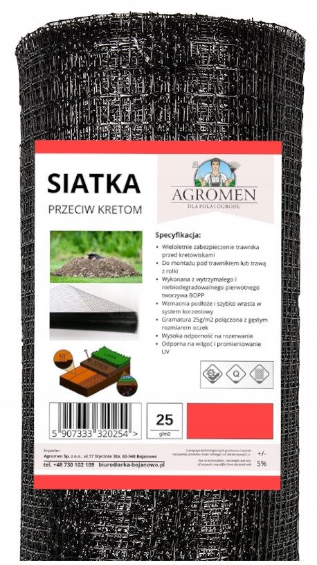 Ширина сітки 12х12 мм дає можливість використання суцільних штифтів або кріплення якорів, які ми маємо в нашій пропозиції . Якорі виготовлені з міцного пластику, який - як сітка - не руйнується в ґрунті.