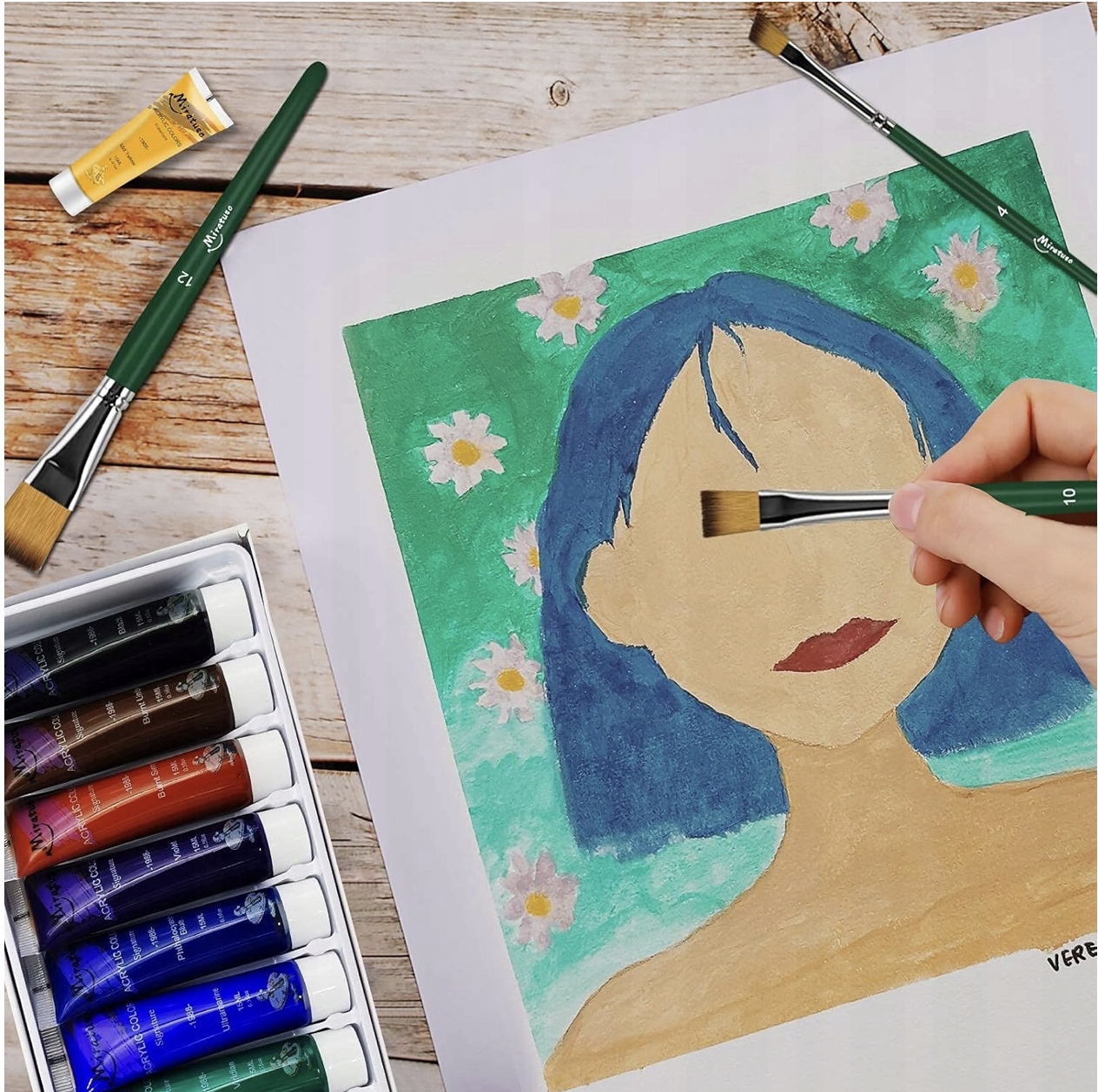 • ◕ Повний набір акрилового живопису: Світловознавчий художній набір включає 1 ескізний мольберт (тримайте полотно до 20,5 "), 12 кольорів акрилових фарб, 10 акрилових пензлів, 3 полотна та 1 паліта.