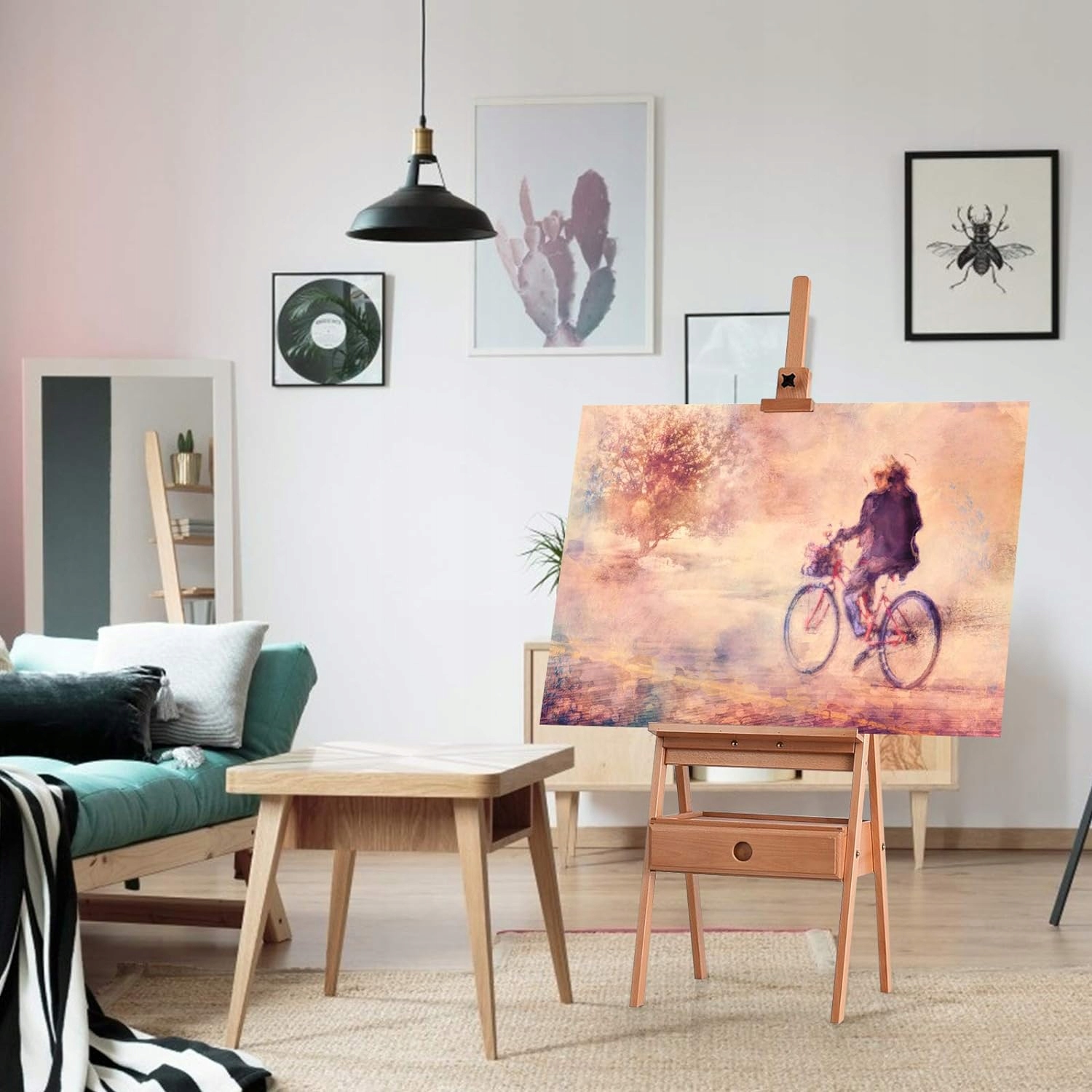 Регулювання висоти. Мольберт оснащено тримачем для полотна, який можна регулювати від 151 см до 1945 см, тож ви можете малювати сидячи або стоячи. Завдяки поворотній кнопці на верхній частині вміщує полотно до 92 см. Великий ящик для більшої практичності Через те, що під час створення картини може знадобитися багато інструментів для малювання, мольберт розроблено з великим ящиком. Так можна зберігати фарби, пензлі та інше начиння. Крім того, містка полиця робить його легко доступним. Натуральний бук на міцність виготовляється з 100% натуральної деревини бука і характеризується хорошою твердістю, стабільністю форми і довговічністю. Ретельно опрацьована гладка поверхня без задирок захистить вас від травм. Стійка конструкція з міцними з'єднаннями. Мольберт з H-подібною рамою може нести полотно з високою стійкістю, зменшуючи ризик перекидання. Крім того, міцне з'єднання не викликає поломки. Багатофункціональний дизайн забезпечує максимальну універсальність. Дерев'яний мольберт ідеально підходить для студентів і дорослих художників. Незалежно від того, який стиль малювання – ескізи чи акварель, олійний живопис чи гуаш, він задовольнить ваші вимоги. Мольберт також можна використовувати для розміщення плакатів у комерційних місцях.