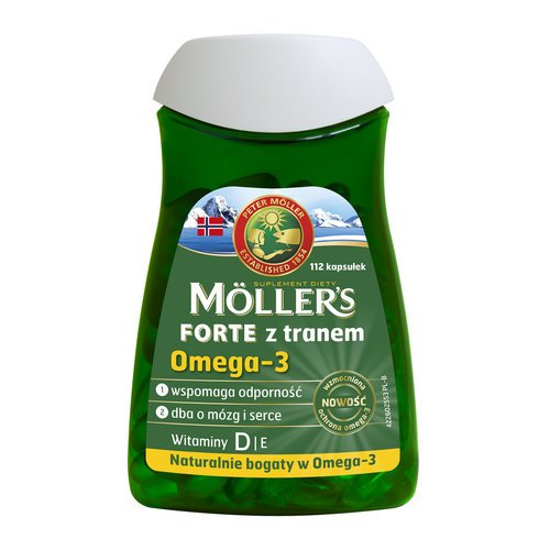 Möller's Forte з риб'ячим жиром - це концентроване джерело омега-3 кислот і вітаміну D3. Капсули містять високоякісний концентрований риб’ячий жир із сардин і анчоусів, що живуть у теплих водах Південної Америки, а також масло норвезької тріски.