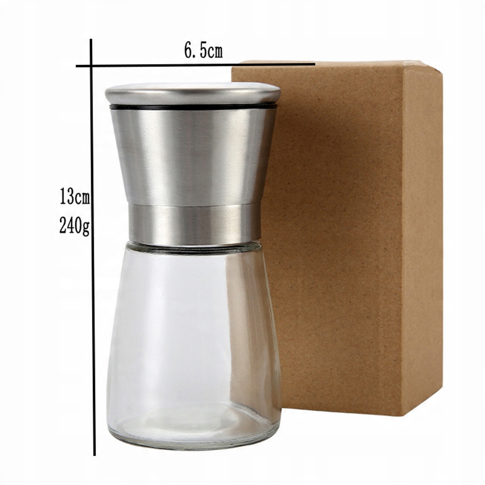 Ця скляна м’ясорубка для солі та перцю має сучасний вигляд, є стильною та елегантною, і її можна використовувати як на кухні, так і на столі.