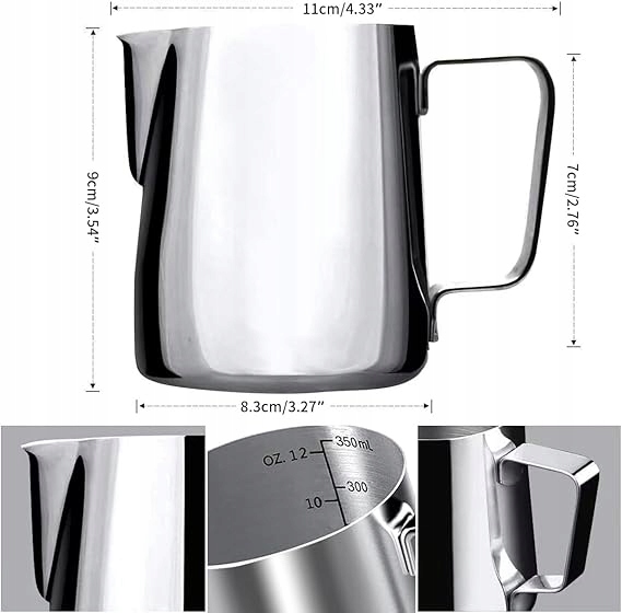 - Професійна якість: виготовлена з нержавіючої сталі № 304, стійкі до іржі, плями, має точну вагу, дуже добре для молока, капучино та латте, кава, це може бути використаний як невеликий вимірювання чашок