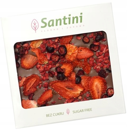 Молочний шоколад без цукру малина полуниця смородина 80г SANTINI
