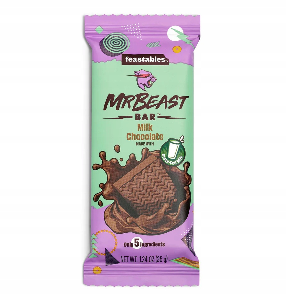 Молочний шоколад «Mr. Beast» від бренду Feastables — це прорив серед традиційних смаків шоколаду. Цей унікальний розклад смаків і оксамитової текстури веде споживача через багатий спектр шоколадних вражень. Вершковий, глибокий молочний шоколад стає сутністю чистого задоволення від кожного шматочка.