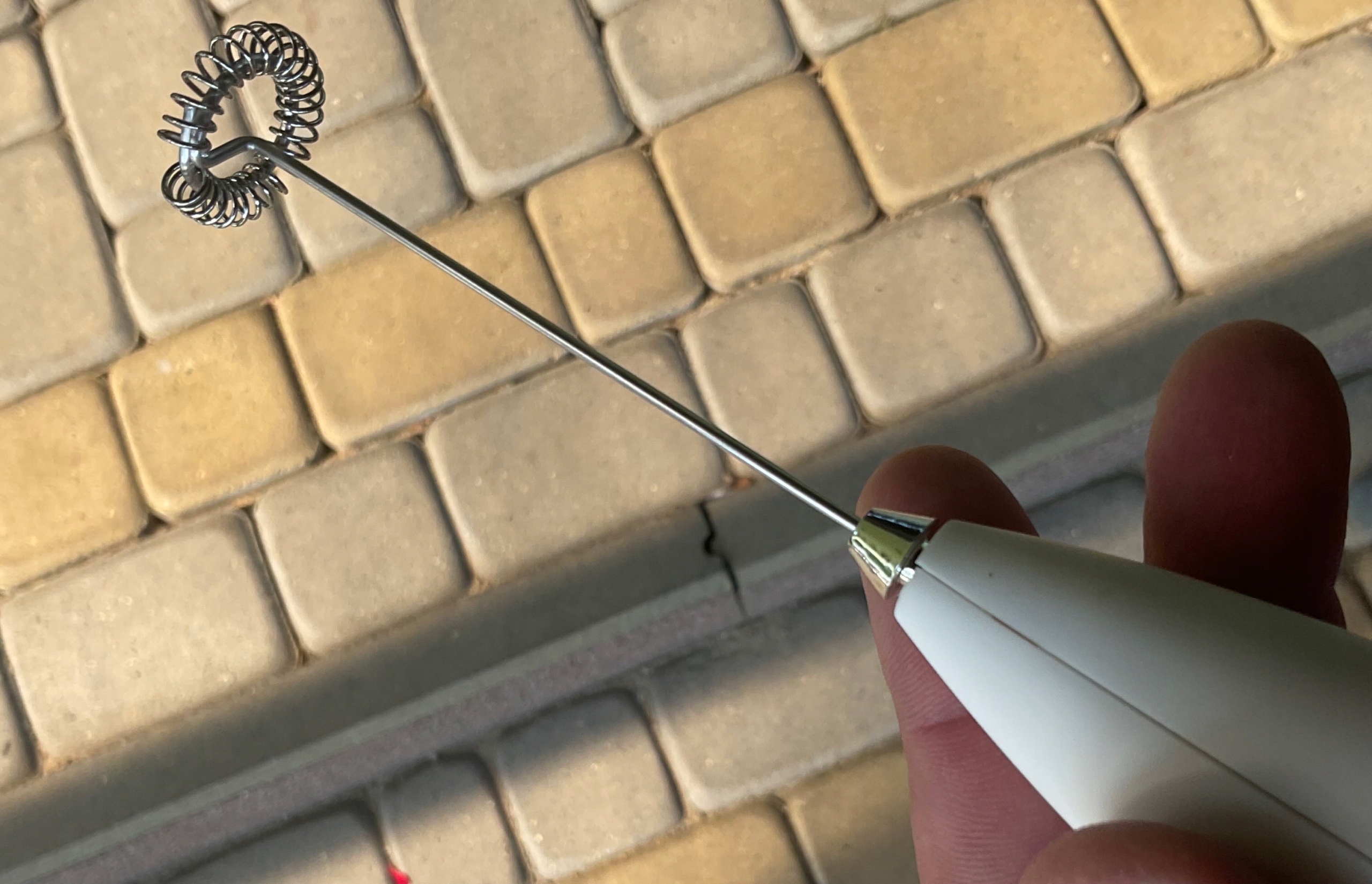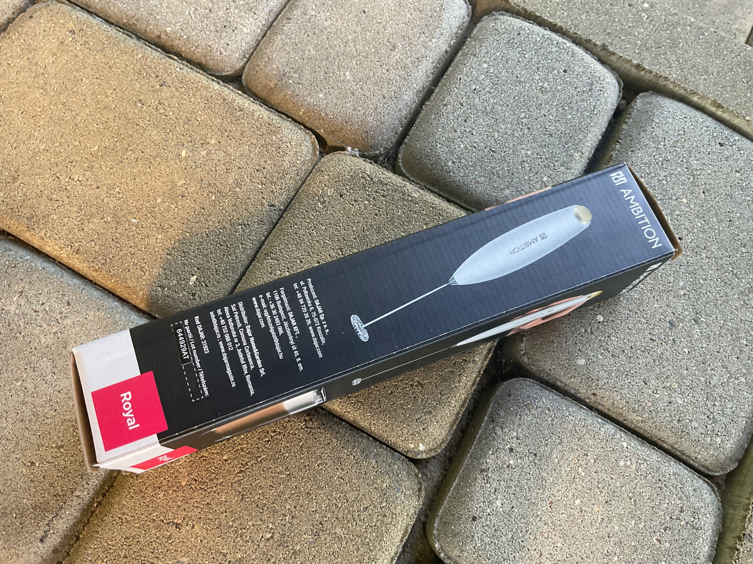 Була виготовлена з нержавіючої сталі. 2 батареї AA ; 1.5 В (вони не включені в набір)
