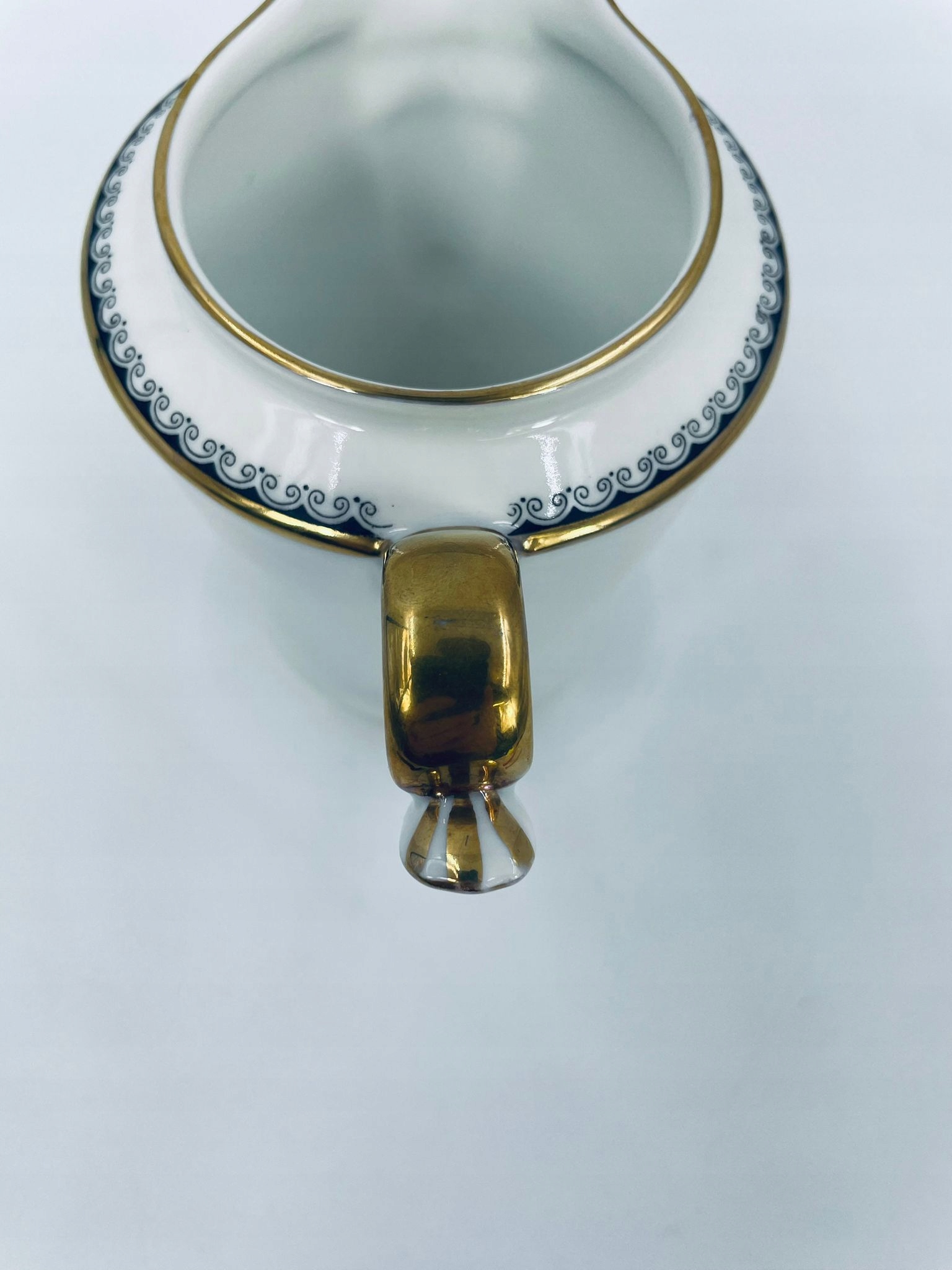 Молочник Eschenbach Bavaria, виготовлений з високоякісної білої порцеляни. Молочник з декоративною ручкою, прикрашений чорним візерунком, оброблений позолотою по краях.