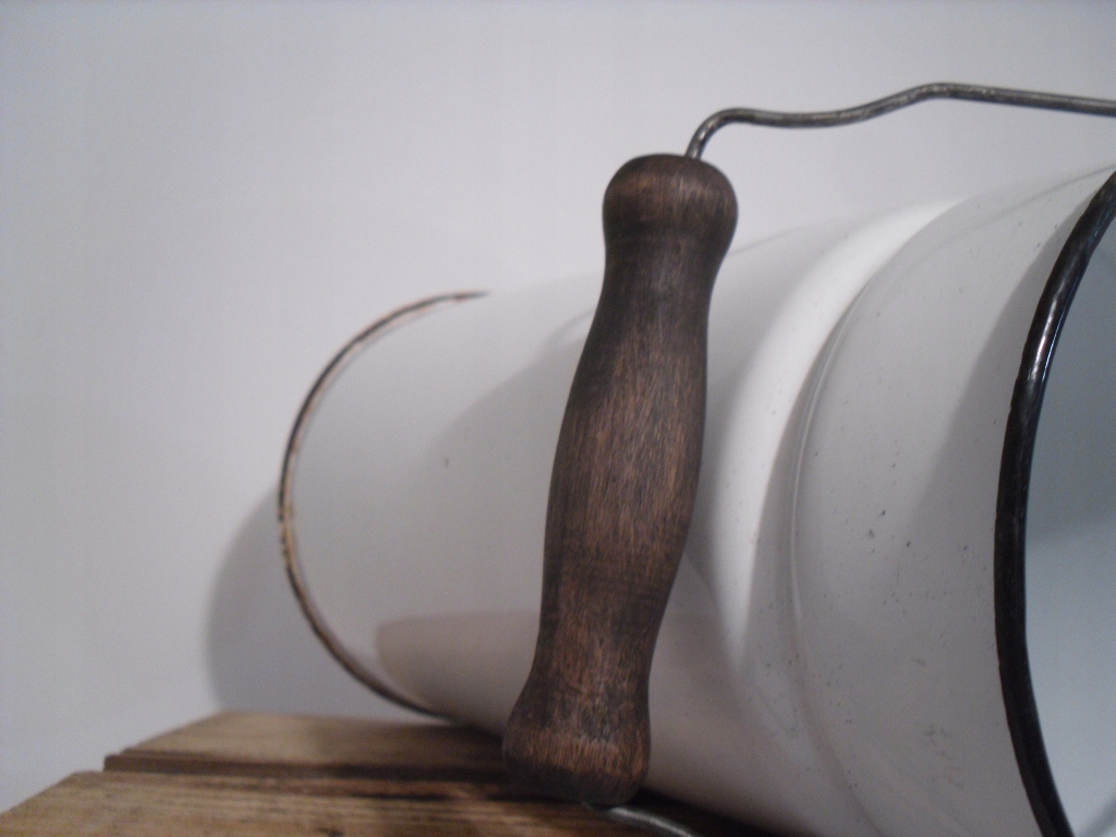 Ласкаво просимо на мій аукціон. На аукціонах я зазвичай пропоную вам речі часів Польської Народної Республіки. На даному аукціоні пропоную ОРИГІНАЛЬНИЙ бидон для молока часів ПНР, об'ємом 3 літри, зовні білий, а всередині білий з чорними обідками. Емальована труба практично не має зовнішніх пошкоджень, тільки пошкодження емалі по краю і знизу, як зовні, так і всередині. Всередині емаль сколена, тільки знизу. Зміна кольору на нижньому краю та сліди корозії. Дерев'яна ручка була очищена та захищена деревним воском. Труба НЕ затягнута, низ на з'єднанні тече /дивіться останнє фото/ Нічим не змащена. На канці є підпис. На фото все видно. /див. фотографії/