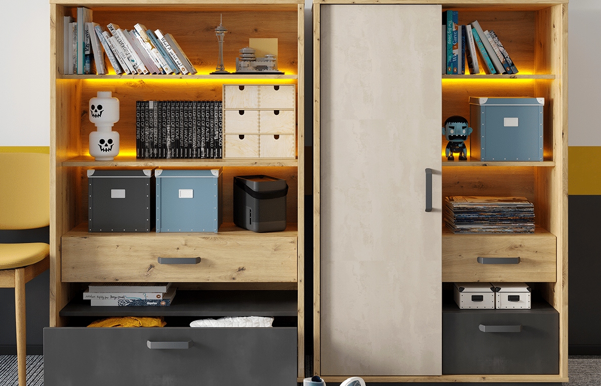 Меблі з колекції CAGO призначені для облаштування молодіжної кімнати. Унікальна форма і нейтральні кольори - дерево, сірий і необроблена сталь роблять їх ідеальними для кімнат як дівчаток, так і хлопчиків. З колекцією CAGO ви створите сучасний і дуже цікавий дизайн, про який мріє кожен підліток!