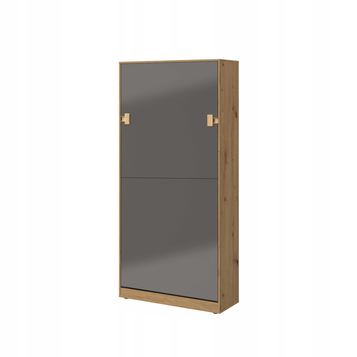 - Дві версії ліжка "приховані в гардеробі" Вертикальний варіант частково закріплений до стіни (дюбелі, доори, щоб придбати на власній підходящому стіні) та горизонтально з практичною полицею для дрібних предметів всередині;