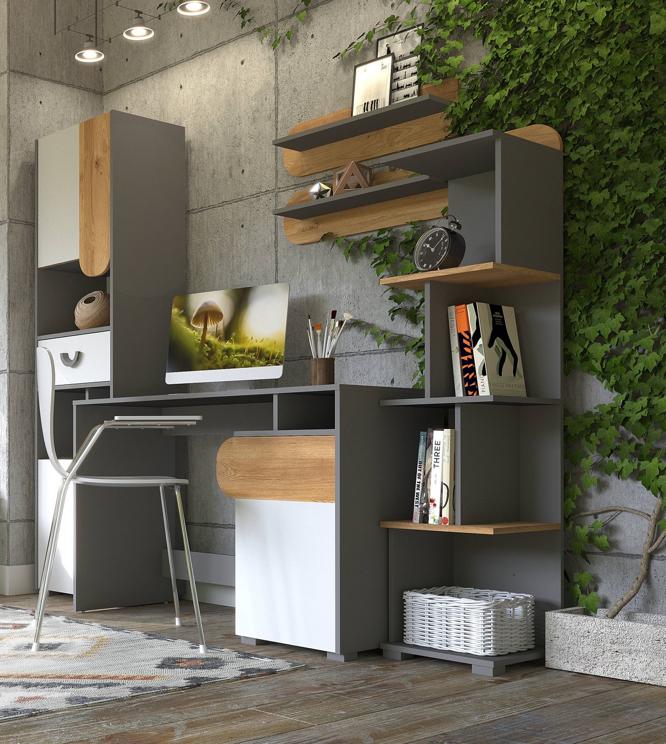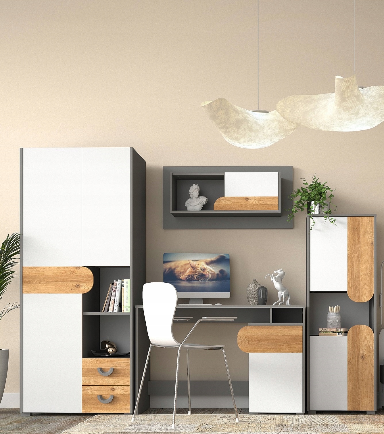 - доступні кольори: корпус: світлий графіт, фасади: дуб наш + блискучий білий