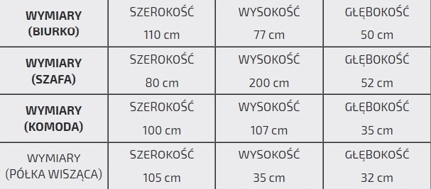 У комплекті 4 елементи: шафа, письмовий стіл, комод, навісна полиця b>