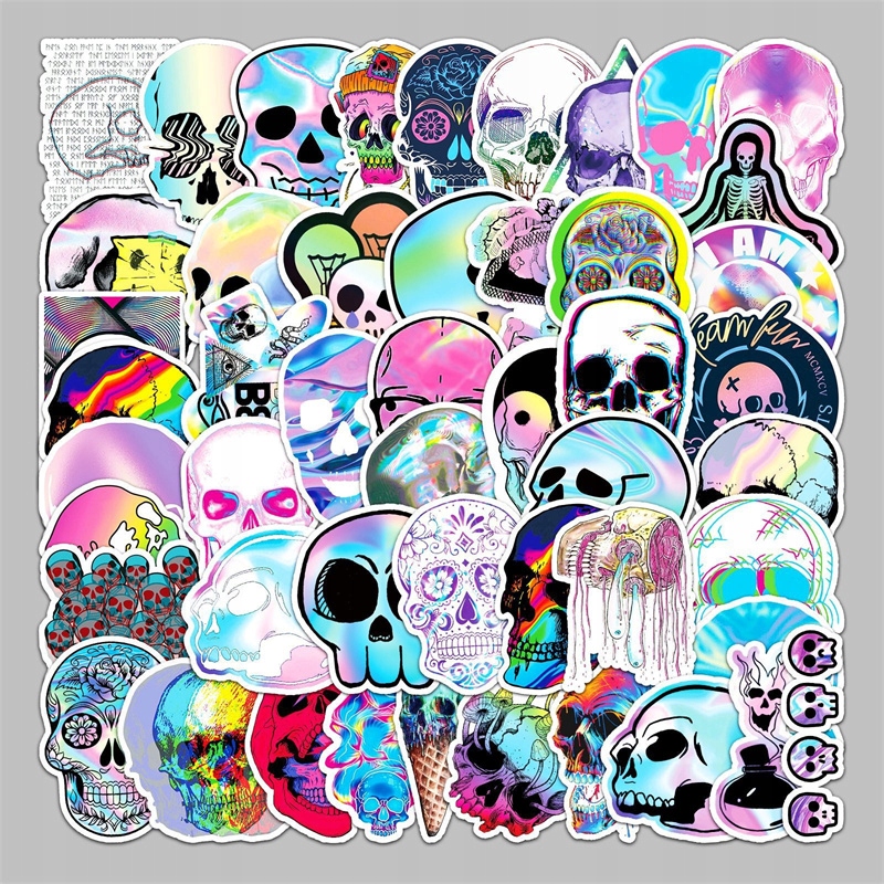 МОЛОДІЖНІ ВОДОСТІЙКІ НАКЛЕЙКИ ДЛЯ СМАРТФОНА НОУТБУКА MIX SKULL HOLO 50 шт.