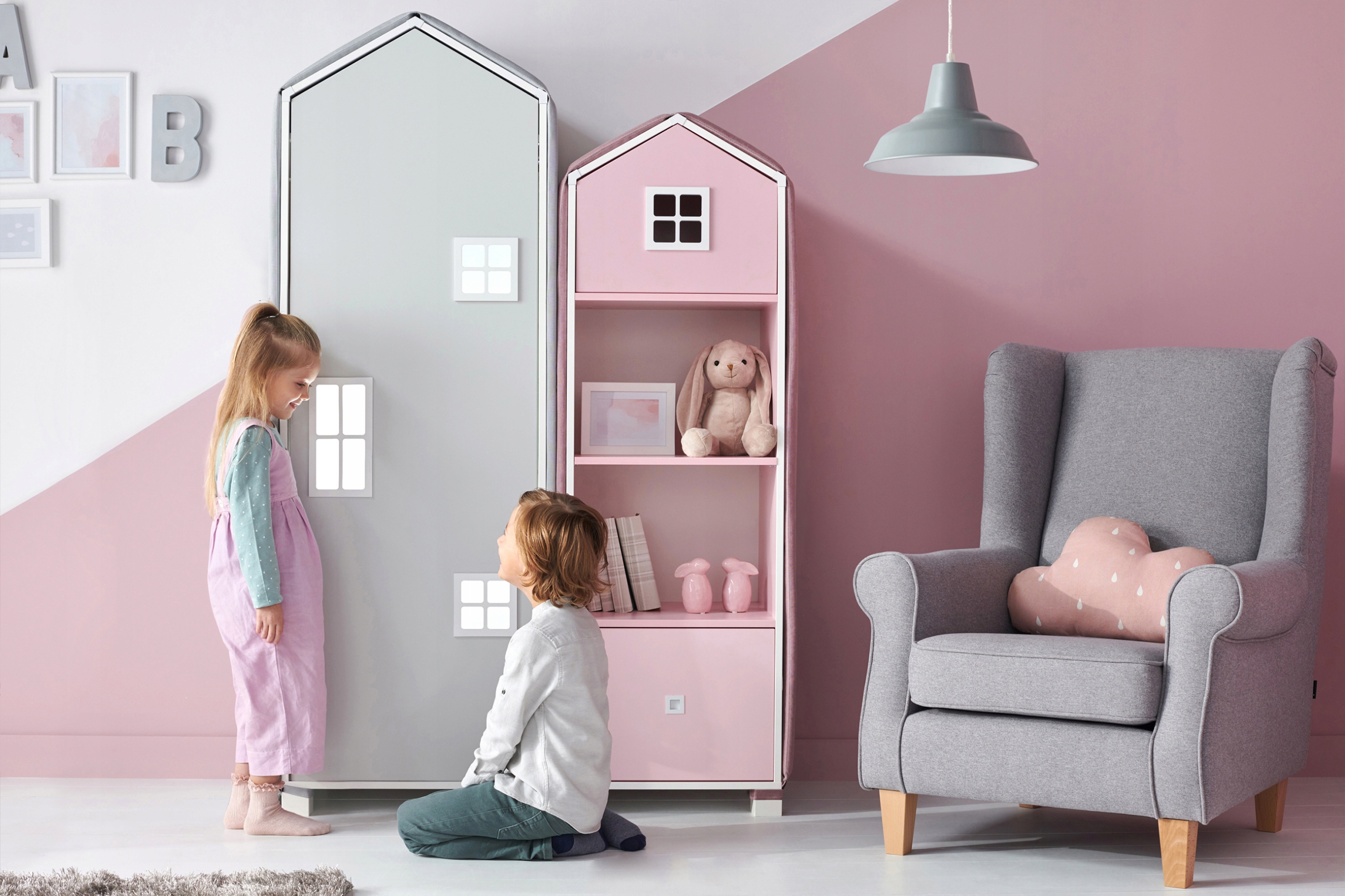 Konsimo знають, що головне в дитячій кімнаті - це безпека. Набір меблів для дівчинки «Рожевий будиночок», 4 елемента, розроблений і виготовлений у Польщі. Вони відрізняються неординарним дизайном і якістю. Призма даху витримує навантаження до 120 кг. Завдяки цьому дитячі меблі з цієї колекції стають безпечним ігровим майданчиком - туди можна зайти, посидіти на ньому і вільно грати без будь-яких турбот! Найвища якість - це з'єднання дощок. , італійські петлі, фурнітура і дуже товста, двостороння лакована дошка.