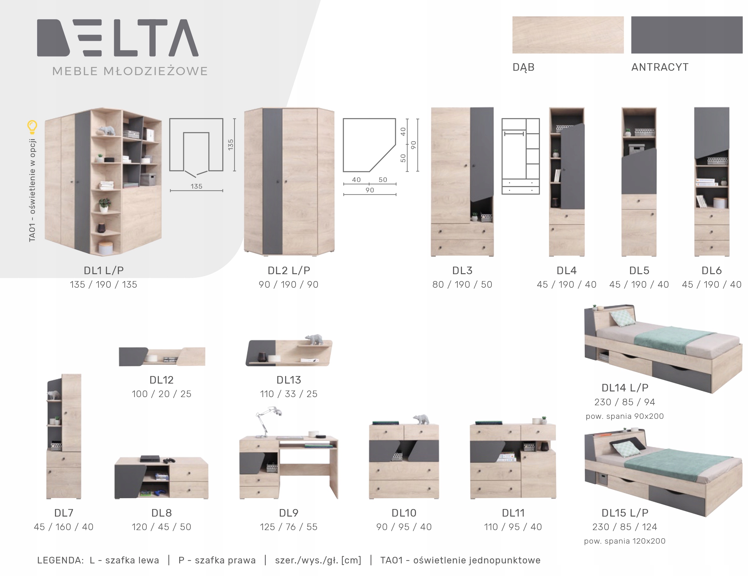 Молодіжний комплект меблів БЕТА, дуб антрацит