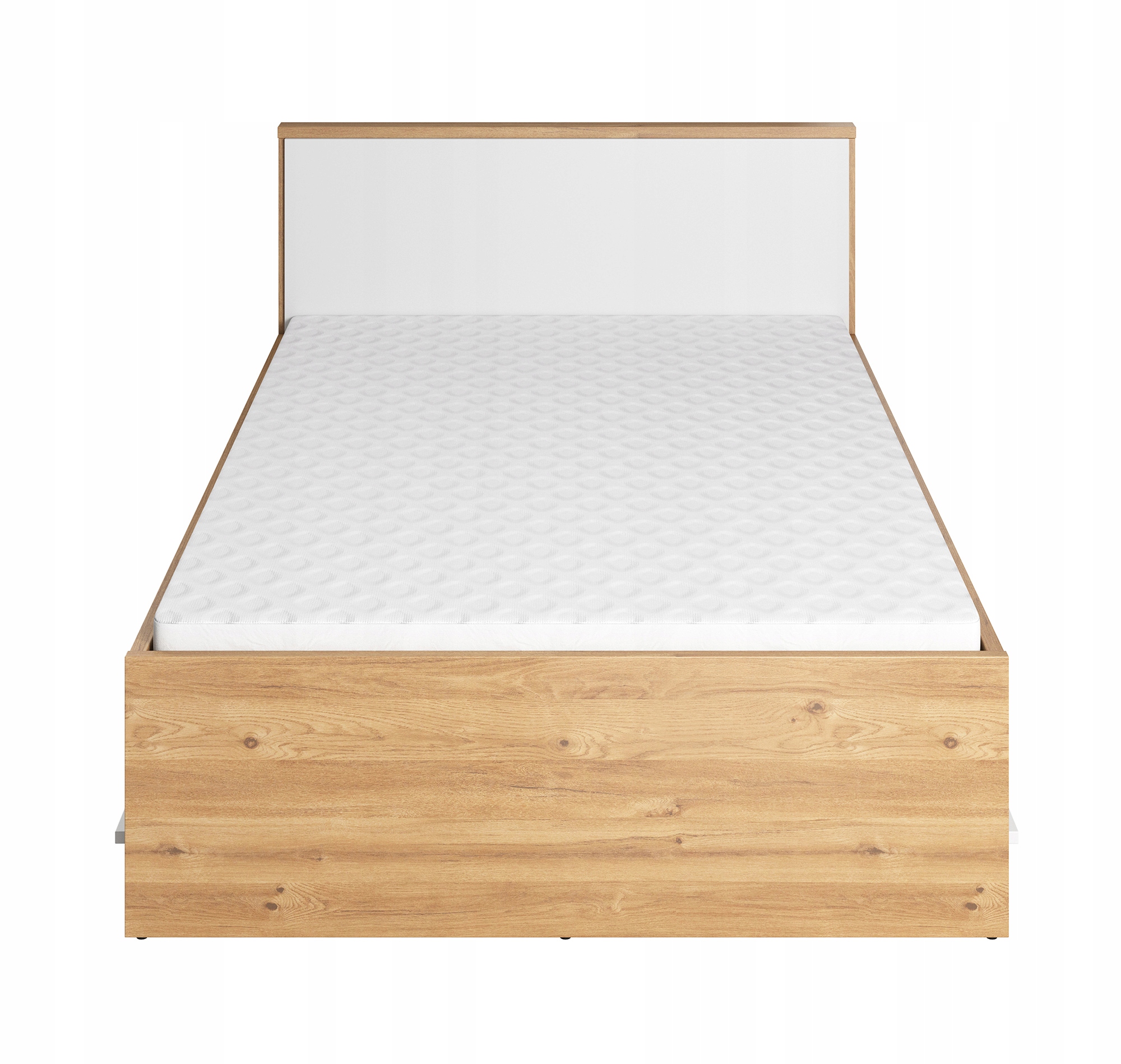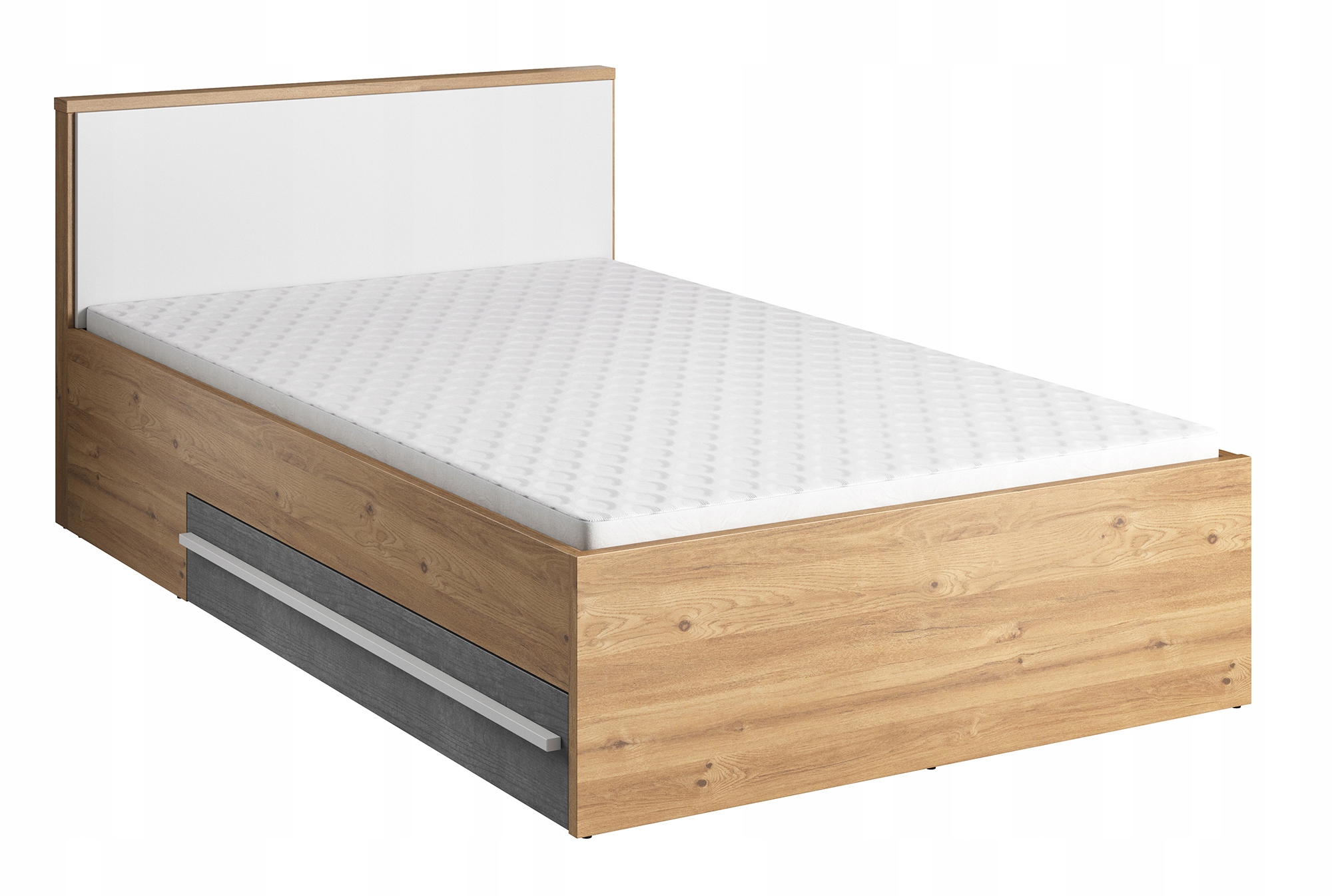 Зручне і практичне односпальне ліжко в сучасному стилі. Вічне поєднання дуба та бетону робить ліжко затишним у будь-якій кімнаті. Усередині ліжка ви знайдете дві шухляди для постільної білизни, ковдр та інших речей. Меблі виготовлені з міцної ламінованої плити, обробленої міцною кромкою з АБС.