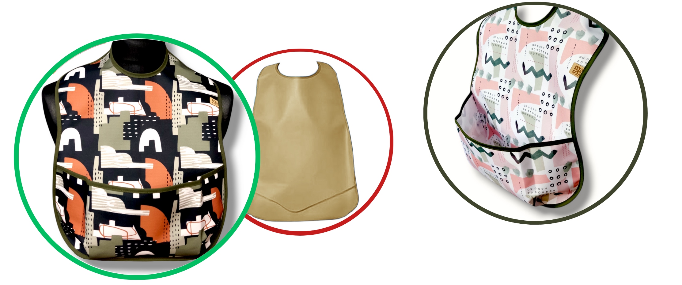 Нагрудник Ergo+mini з кишенею Модель для дітей старшого віку та підлітків створена на основі найбільш часто замовляних слюнявчиків для цієї дитини. групи людей, які перебувають під їх опікою. Ergo+mini відрізняє: