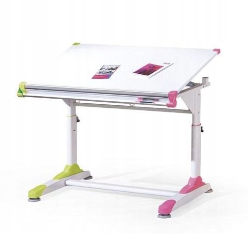 Письмовий стіл COLLORIDO виготовлений з лакованої МДФ плити та фарбованої сталі. Має регульовану висоту стільниці та регульований кут нахилу стільниці. Має велику робочу поверхню і оригінальний зовнішній вигляд. Регульована стільниця забезпечує правильну поставу дитини під час малювання, письма, читання та гри.