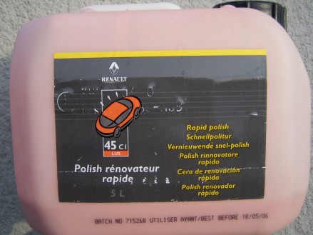Полірувальне молочко "POLISH RENOVATEUR RAPIDE - NANOTECHNOLOGIA" виробляється, в тому числі, для концерну RENAULT і використовується для полірування та консервації акрилового лаку та безбарвного лаку, що захищає неметалевий, металевий та перламутровий лак на основі.