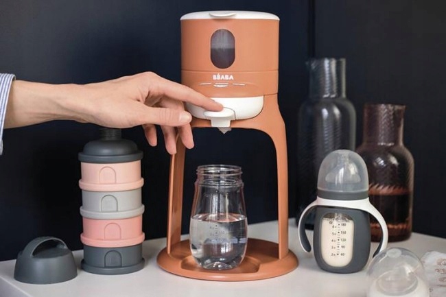 Bib'Expresso® - це пристрій 2in1 для приготування їжі від французького бренду BEABA. Дозволяє швидко приготувати молоко для малюка, використовуючи одну руку (кожна мама знає, наскільки це практичне рішення). За формою обладнання нагадує кавоварку (звідси і назва), але воно більш ергономічне, компактне і зручніше в зберіганні. У верхній частині знаходиться ємність для нагріву води з практичним віконцем для перегляду її рівня. Воду можна нагріти до кімнатної температури, тобто 22°C, або до температури тіла, тобто 37°C. Потім просто помістіть пляшку з молочною сумішшю під неї, натисніть кнопку, і вода відповідної температури наллється в пляшку, щоб змішана їжа була негайно готова до вживання. Це гарантує система Direct Water Control®. Апарат також може виконувати роль підігрівача для пляшок або банок - від 90 до 380 мл. Просто помістіть їх у резервуар з водою та виберіть – залежно від ваших потреб – один із двох рівнів нагрівання: до 70°C (для скляних пляшок і менших банок) або до 90° (для пластикових пляшок і великих банок). Менша страва розігрівається лише за 30 секунд, велика – максимум за 2 хвилини. Про закінчення кожного циклу сповіщає звуковий сигнал.