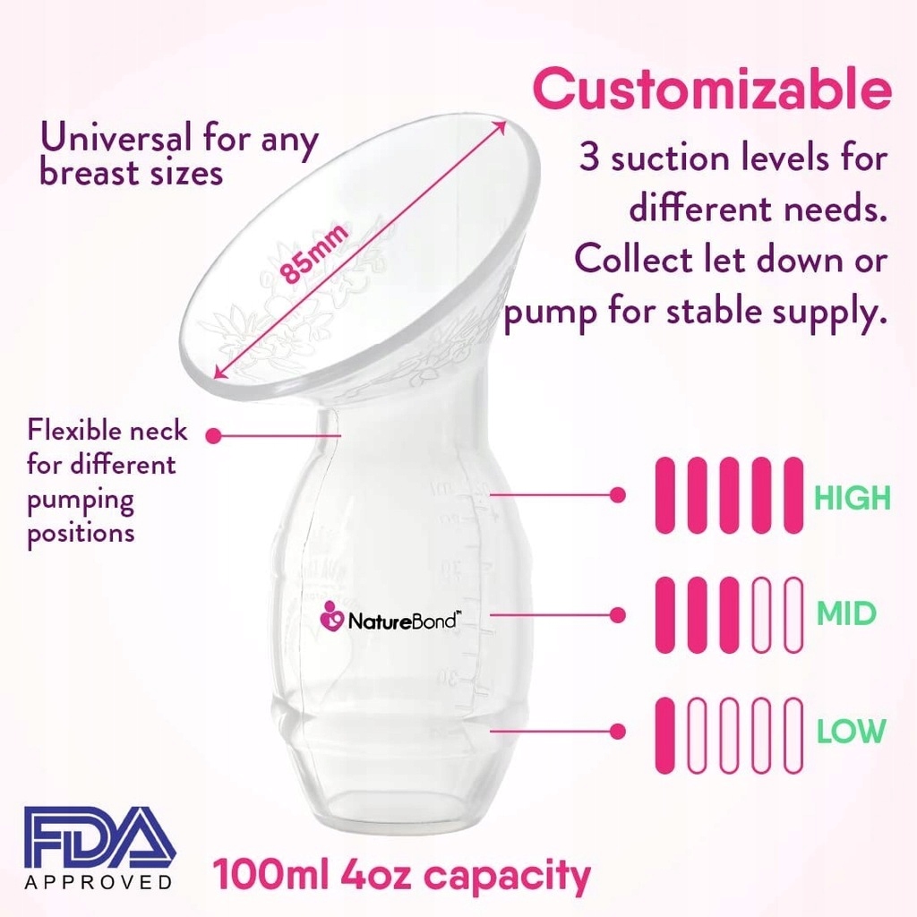 Силіконовий молоковідсмоктувач NatureBond зціджує молоко вручну без використання рук завдяки природному тиску всмоктування.
