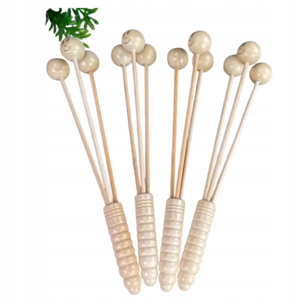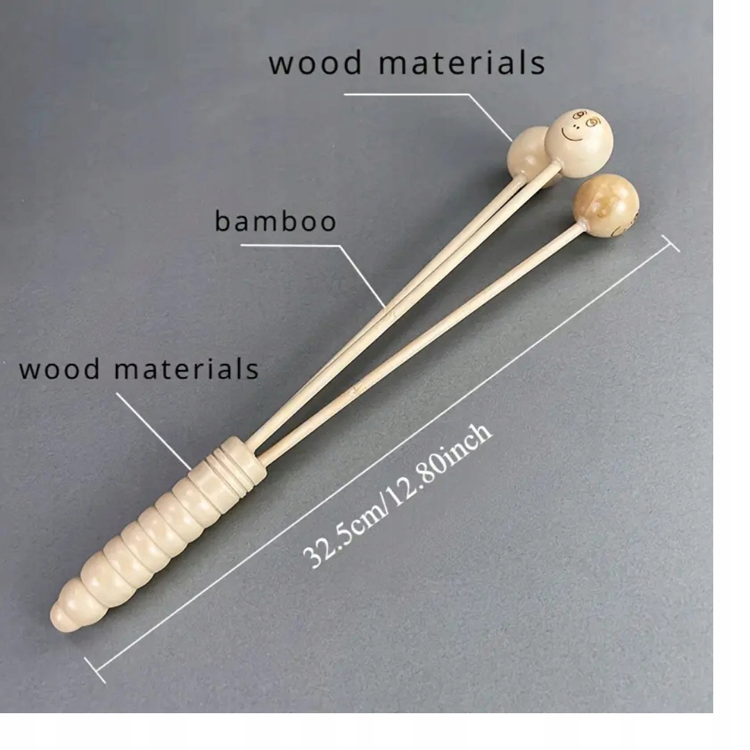 - Матеріал: масажні головки виготовлені з гладкої деревини та бамбукового валу. Дерев’яна ручка ергономічно профілюється, що забезпечує певне зчеплення та комфорт використання.