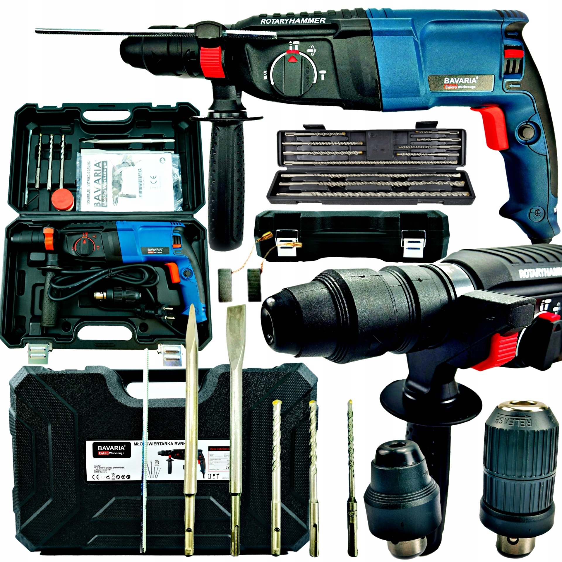 - Патрон SDS-PLUS і швидкозажимний свердлильний патрон входить в комплект