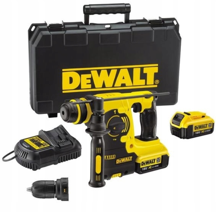 Ідеально підходить для свердління отворів діаметром від 4 до 24 мм для анкерів у цеглі, кладці та бетоні Обмежувач обертання для легкого довбання штукатурки, кераміки або цегляної кладки та обмежувач удару для свердління в дереві та металі Нова літій-іонна батарея XR 18 В 4,0 А·год забезпечує високу продуктивність, довговічність і довший час роботи на одному заряді Швидкозмінний патрон SDS-Plus і швидкозажимний свердлильний патрон.